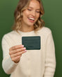実用的でスタイリッシュな、ダークグリーンのレザー製「Qani」カードケース