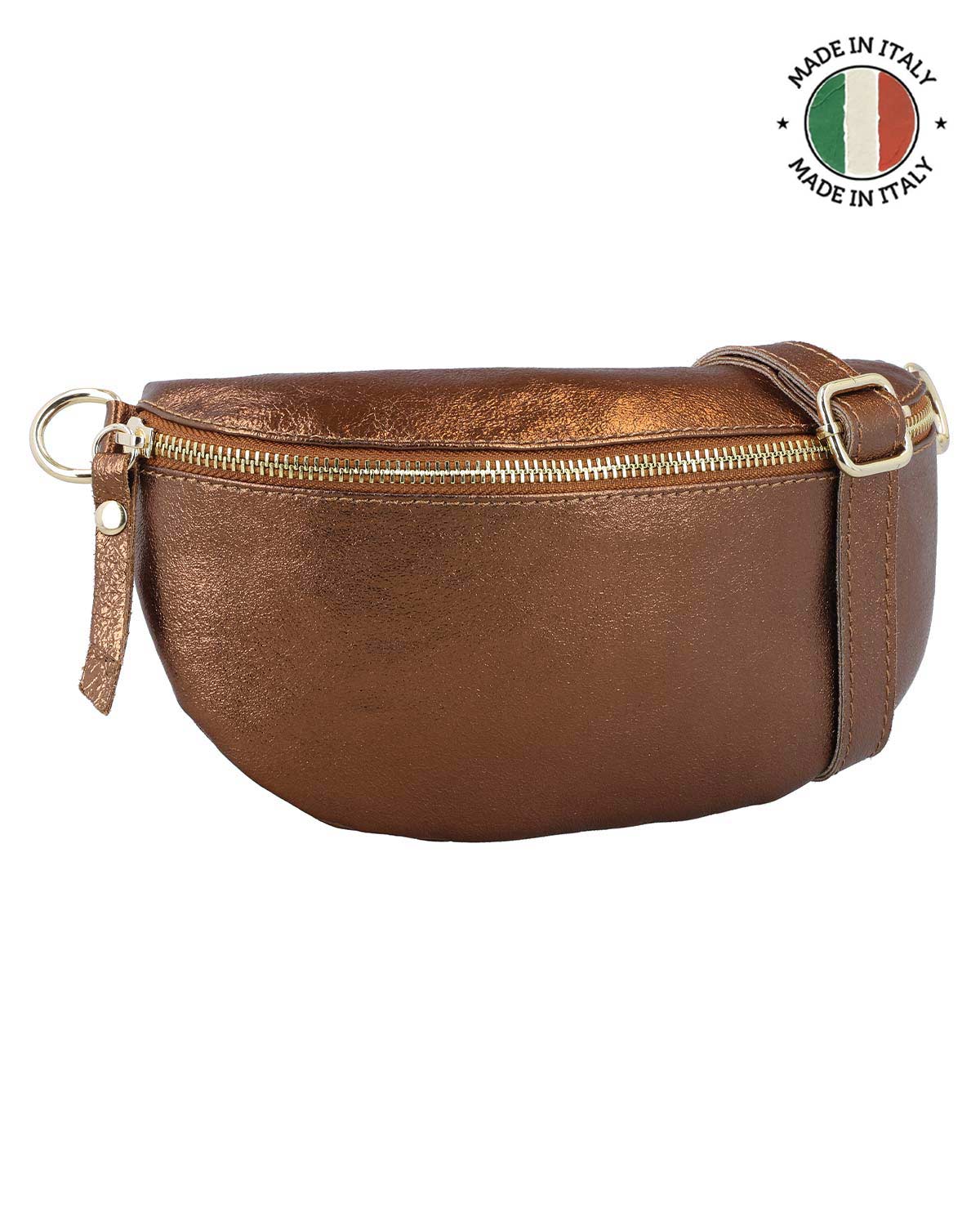 ウエストバッグ ボディバッグ ファニーパック クロスボディバッグ レディース ブラウン パテント レザー - Made in Italy