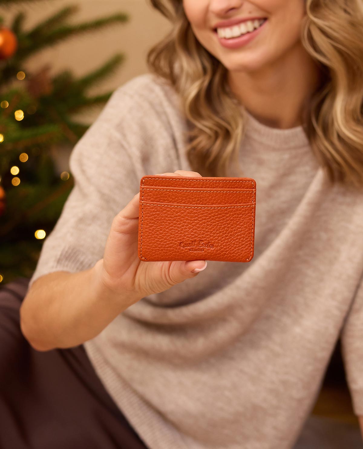 実用的でスタイリッシュ–オレンジ色の革製 "Qani" カードケース