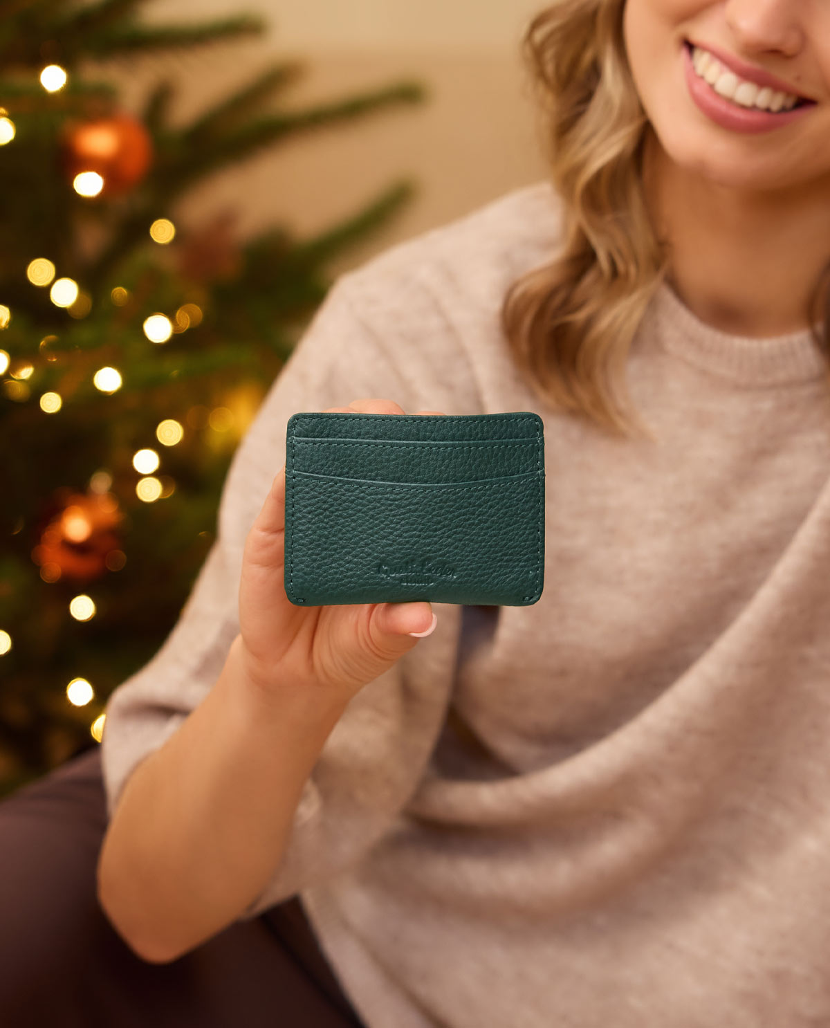 実用的でスタイリッシュ – ダークグリーンのレザー製「Qani」カードケース