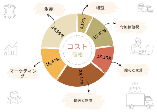 高品質の革は、必ずしも高価である必要はありません。当社の価格は透明性が高く、一定で、慎重に計算されており、隠れた費用は一切ありません。自社生産、持続可能な包装、そしてよく考えられた物流システムにより、当社は革製品を他社の追随を許さない価格で提供することができます。これにより、妥協することなく最高の品質を手に入れることができます。当社の目標は、新しい革製品が手頃な価格であるだけでなく、あなたの毎日の相棒になることです。