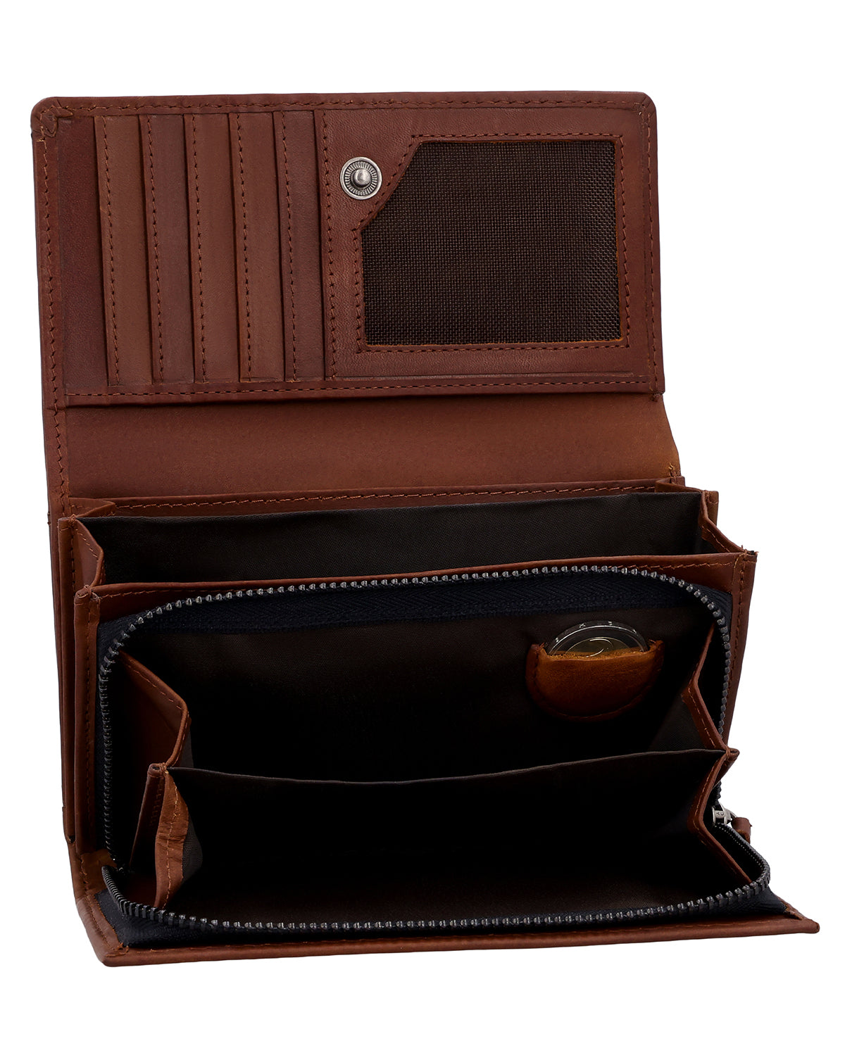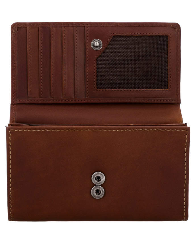 Mit unserem Portemonnaie "Gemma" hast du alles dabei: Karten, Scheine, Kleingeld und Fahrkarten finden ihren angestammten Platz. Die beiden Kleingeldfächer kannst du mit einem Reißverschluss verschließen. Zusätzlich gibt es ein extra Münzfach für eine einzelne Münze – perfekt, wenn du mal schnell eine passende Münze griffbereit haben möchtest. In "Gemma" findest du Platz für mindestenst fünf Karten, außerdem bieten wir dir noch einen Kartensteckplatz mit transparentem Sichtfenster für deinen z.B. deinen Ausweis. Deine Geldscheine sind in zwei separaten Fächern gut untergebracht. Dank integriertem RFID-Schutz sind deine Karten zudem zuverlässig vor ungewolltem Auslesen geschützt. Das restliche Portemonnaie wird durch einen Druckknopf zusammengehalten. So kommst du schnell an dein Geld, es ist aber trotzdem vor dem Hinausfallen geschützt. Die Geldbörse besteht aus robustem Rindsleder und ist so ein wahrer Alltagsheld: perfekt für Vieleinkäufer und die, die es noch werden wollen!