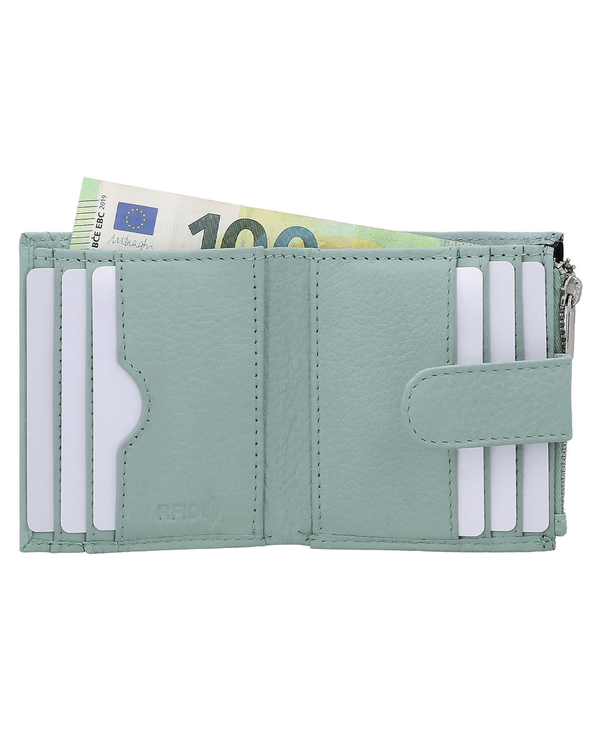 Das Portemonnaie bietet 9 Fächer für Karten, sodass Du stets alles griffbereit hast. Dank des Druckknopfverschlusses bleibt Dein Hab und Gut sicher verstaut. Zusätzlich sorgen zwei Reißverschlussfächer für eine sichere Aufbewahrung von Münzen, wobei im Münzfach ein separater Steckplatz für eine 1-€-Münze integriert ist – perfekt, wenn es an der Kasse schnell gehen muss. Ein zuverlässiger Begleiter für Deinen Alltag – elegant, praktisch und hochwertig.