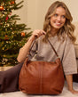 Du suchst nach einem klassischen Shopper, der Dich nicht im Regen stehen lässt? Dann ist "Hannah" genau Dein Fall. Diese mittelgroße Umhängetasche besteht aus robustem und widerstandsfähigem Rindsleder, das in einem kräftigen camelbraun erstrahlt. Mit ihrem geräumigen Innenfach hast Du genug Platz für alles, was Du auf einem Bummel durch die Stadt oder im Berufsalltag gebrauchen könntest. Durch das stilvolle Design, inspiriert von Berlin, bist Du immer bestens ausgestattet, ob für den täglichen Einsatz oder einen spontanen Ausflug.