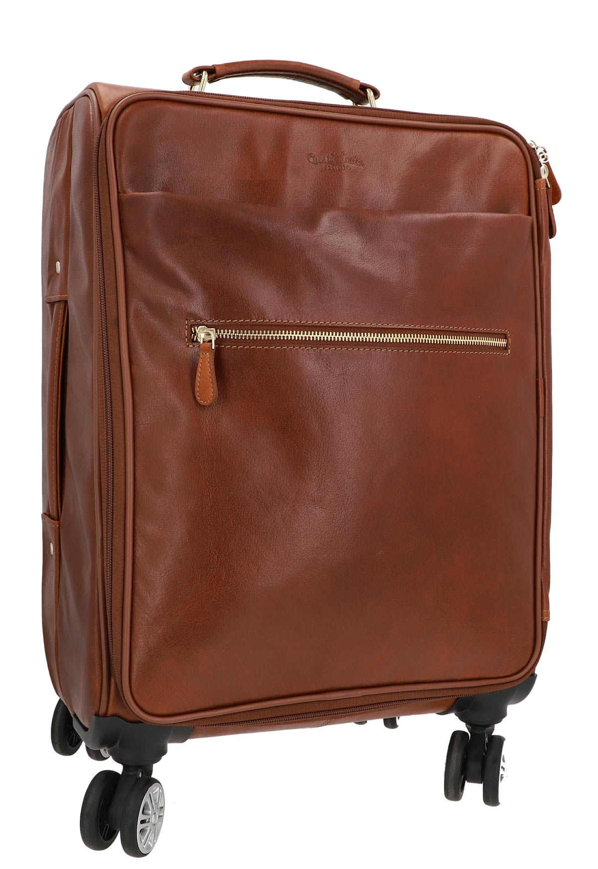 Reisetrolley Koffer Reisetasche mit Rollen Damen Herren Designed in Berlin Braun Leder