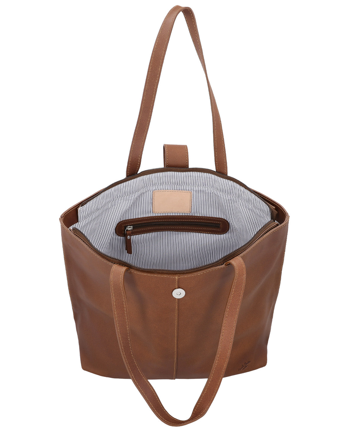 Die praktischen Innenfächer bieten die Möglichkeit, Kleinigkeiten wie Handy und Schlüssel schnell zu verstauen, ohne die ganze Tasche durchsuchen zu müssen. Die "Alexandra" bietet Platz für Geräte bis 15", Ordner, Geldbeutel, Make-up und Einkäufe – einfach alles, was Du im Alltag benötigst. Mit ihrer einzigartigen Größe und dem stabilen Echtleder ist sie nicht nur ein praktischer, sondern auch ein stilvoller Begleiter für jedes Abenteuer, das der Tag für Dich bereithält.