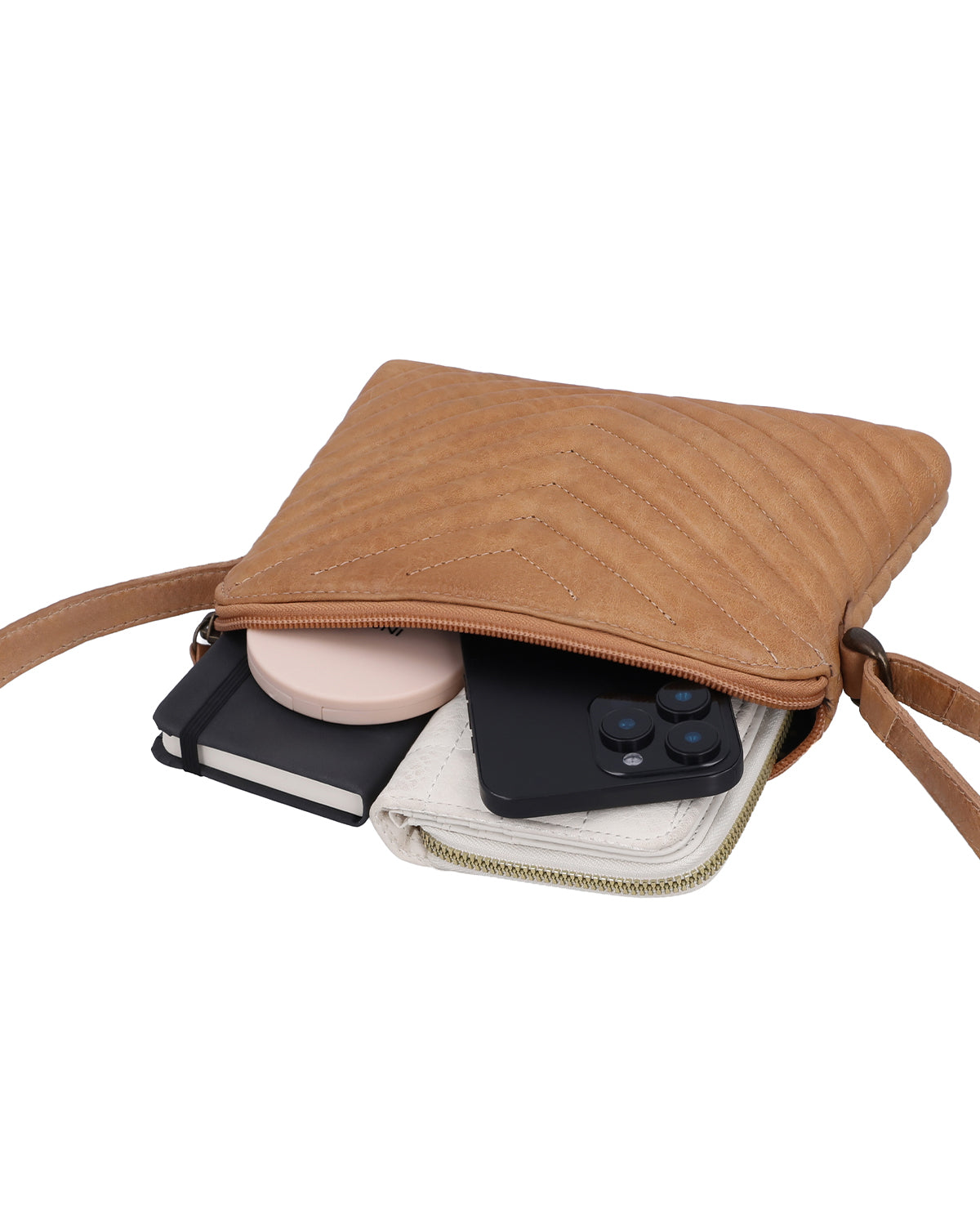 Die kleine Handtasche „Aline“ ist eine Lederhandtasche für Damen, die Farbe und Struktur bewusst in ihren Alltag integrieren möchten. Das braune Leder wirkt lebendig und wird durch das markante Muster auf der Oberfläche zu einem besonderen Hingucker, der Deinem Outfit sofort Leichtigkeit verleiht. Trotz ihres kompakten Formats bietet „Aline“ dank Reißverschluss-Hauptfach und verstellbarem Schulterriemen genau die Flexibilität, die Du im Alltag brauchst. Diese Umhängetasche aus Leder begleitet Dich entspannt durch den Tag und setzt dabei ein klares, positives Stilstatement.