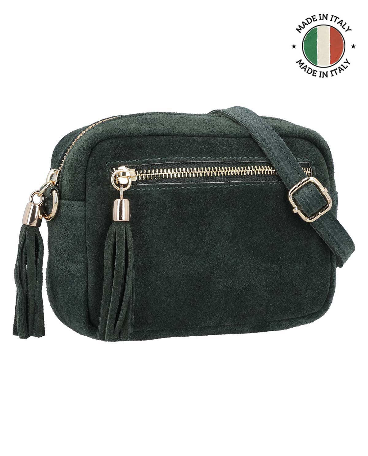 Umhängetasche Ledertasche Handtasche Crossbody Tasche Damen Dunkelgrün Leder - Made in Italy