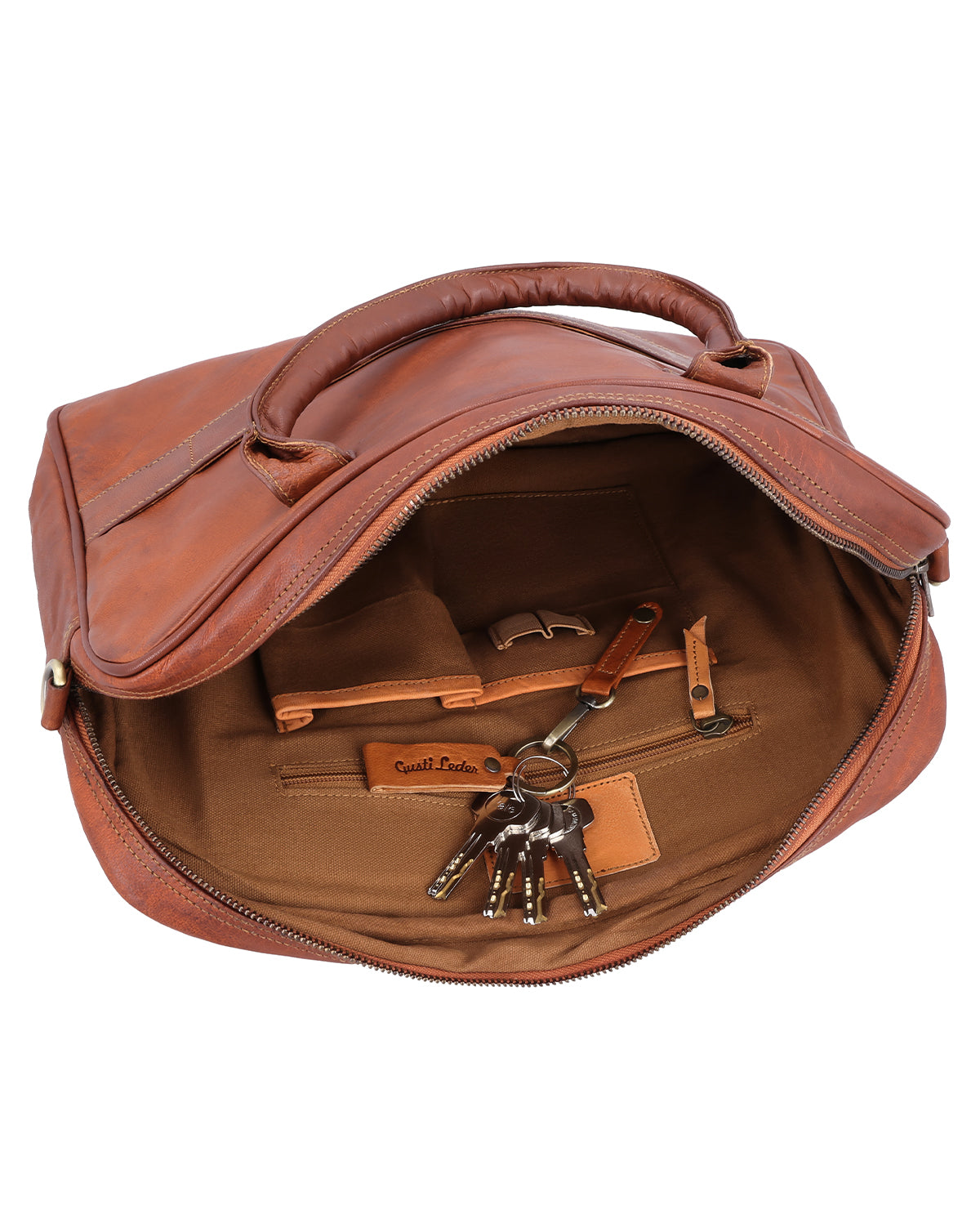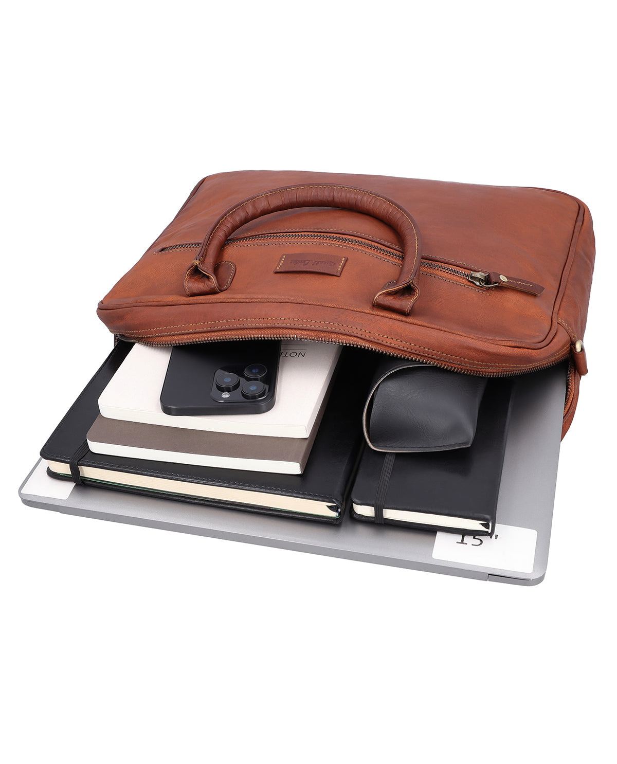 Mit "Cassius" entscheidest Du Dich für eine Aktentasche, die Eleganz, Funktionalität und Komfort perfekt vereint. Gefertigt aus hochwertigem Leder überzeugt sie durch ihre klare Linienführung und ihre durchdachte Innenaufteilung. Das Hauptfach mit Reißverschluss bietet großzügigen Stauraum, während das gepolsterte Laptopfach Deinen Computer sicher schützt. Im Inneren findest Du zwei Steckfächer, ein Reißverschlussfach sowie Stifthalter und einen abnehmbaren Schlüsselringhalter, damit alles seinen Platz hat. Ein integriertes AirTag-Fach sorgt dafür, dass Du Deine Tasche jederzeit wiederfindest – ideal für Deinen modernen Arbeitsalltag.
