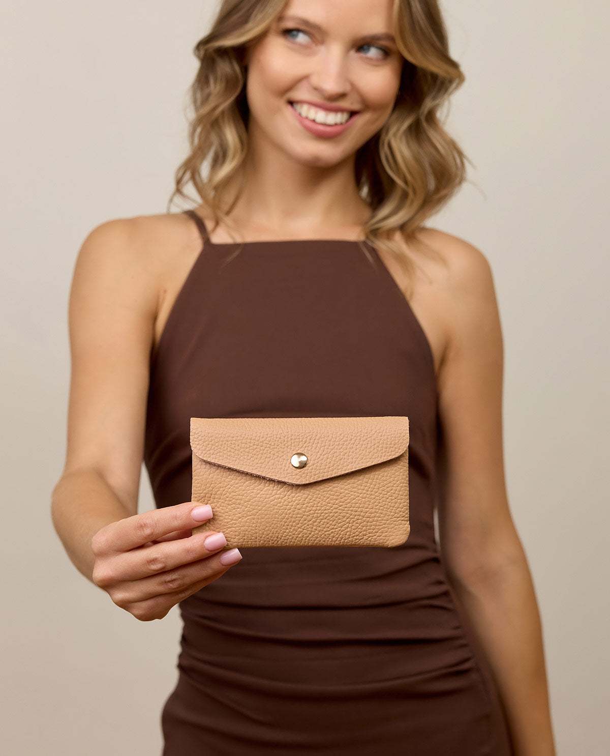 Die "Anela" Aufbewahrungstasche ist mehr als nur ein Accessoire – sie ist die perfekte Kombination aus stilvollem Design und praktischer Funktion. Ihre elegante Umschlagklappe mit magnetischem Verschluss sorgt dafür, dass Deine wichtigsten Utensilien sicher und gleichzeitig schnell zugänglich sind. Aus hochwertigem Leder gefertigt, verkörpert sie die Kunstfertigkeit italienischer Handwerkskunst und besticht durch ihre edle Optik und Haltbarkeit. Diese Tasche fügt sich nahtlos in Deinen Alltag ein und verleiht Deinem Look eine raffinierte Note.