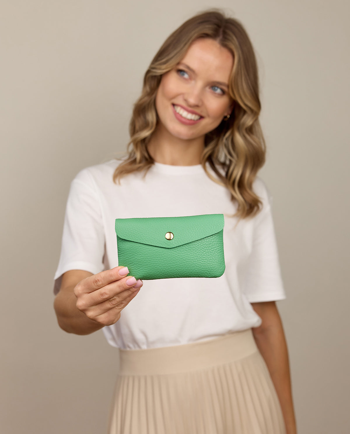 Aufbewahrungstasche Organizer klein Ledertasche Damen Grün Leder - Made in Italy