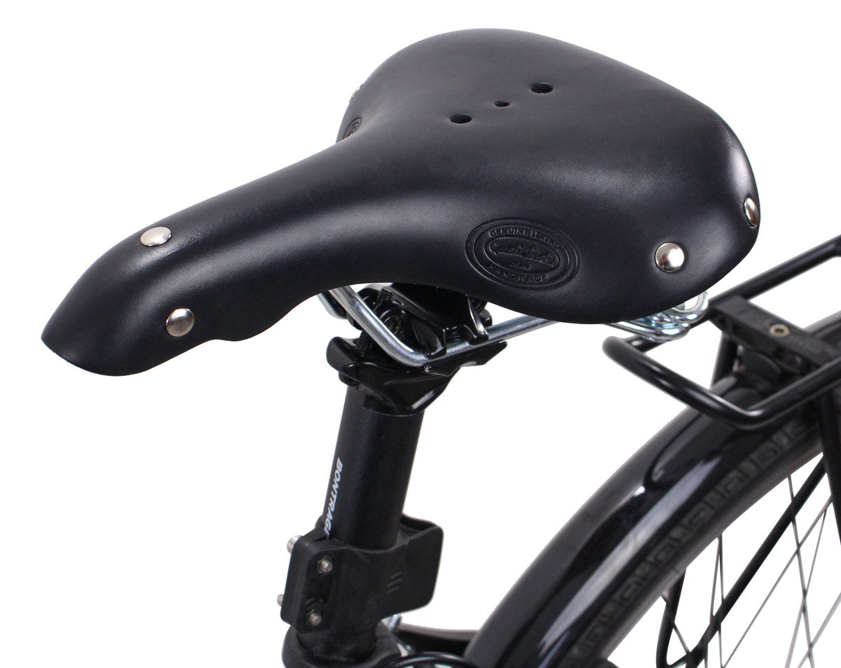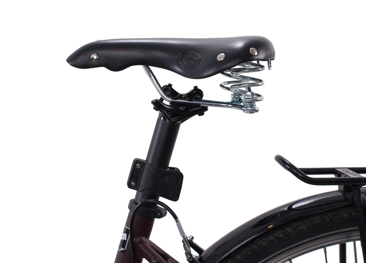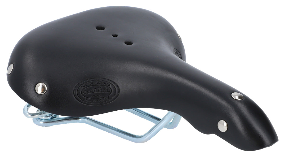 Dank seiner speziellen Form mit schmalem Schaft und breiter Sitzfläche verteilt "Mark C." das Körpergewicht optimal und sorgt für Druckentlastung – egal, ob Du sportlich oder entspannt unterwegs bist. Die Metallfedern garantieren zusätzlichen Komfort und eine effektive Stoßdämpfung. Das hochwertige Rindsleder macht den Sattel zu 100 % atmungsaktiv, sodass Du selbst auf langen Strecken keinen schweißnassen Po riskierst. Und anders als PVC-Sättel bleibt "Mark C." auch nach Jahren frei von Rissen und Materialermüdung. Setz Dich auf Dein Rad und entdecke die Welt – mit maximalem Fahrspaß von Anfang an!