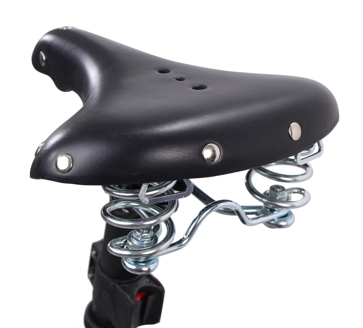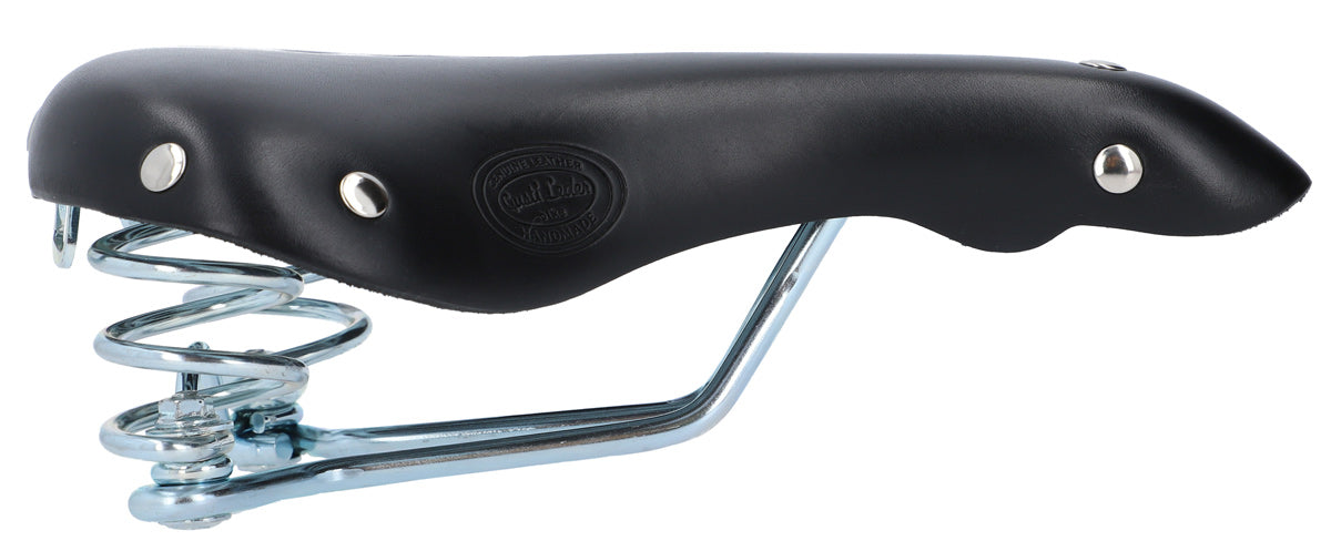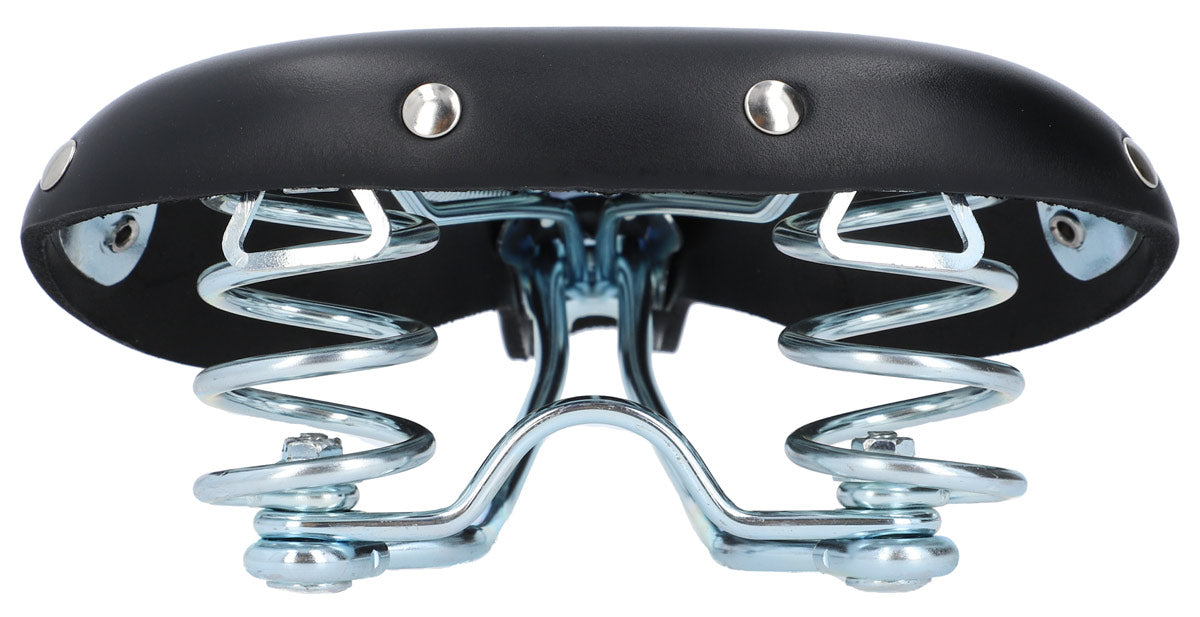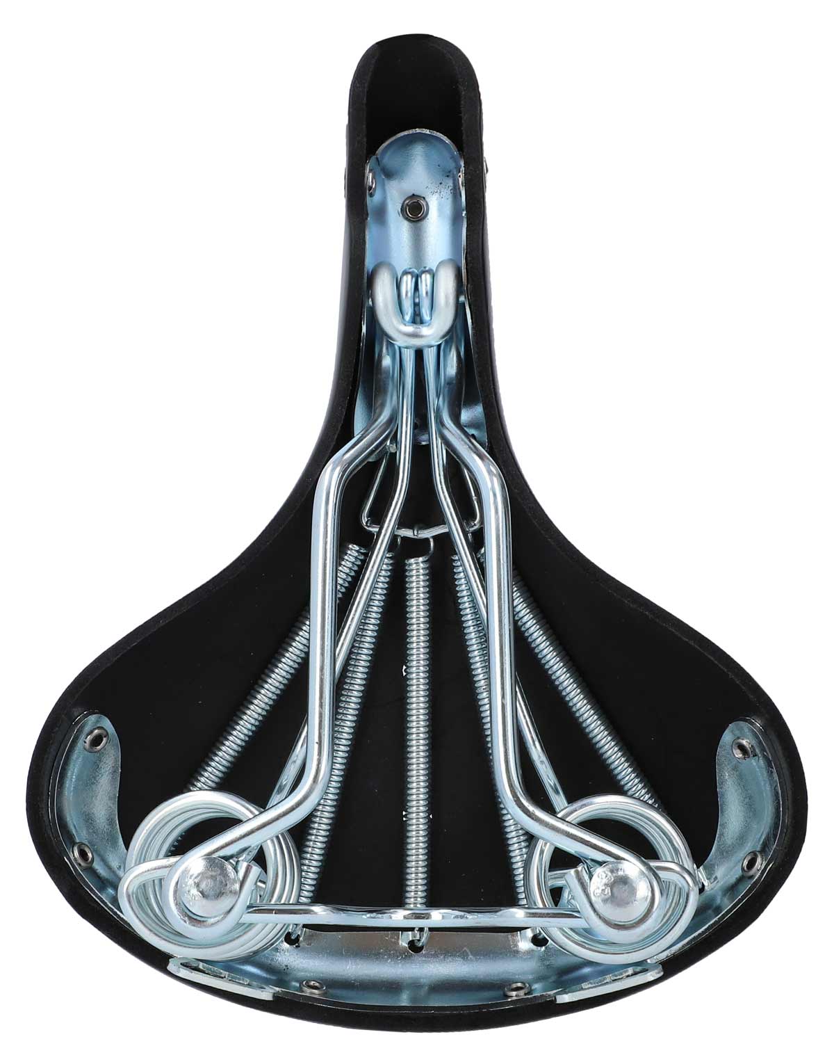Dank seiner speziellen Form mit schmalem Schaft und breiter Sitzfläche verteilt "Mark C." das Körpergewicht optimal und sorgt für Druckentlastung – egal, ob Du sportlich oder entspannt unterwegs bist. Die Metallfedern garantieren zusätzlichen Komfort und eine effektive Stoßdämpfung. Das hochwertige Rindsleder macht den Sattel zu 100 % atmungsaktiv, sodass Du selbst auf langen Strecken keinen schweißnassen Po riskierst. Und anders als PVC-Sättel bleibt "Mark C." auch nach Jahren frei von Rissen und Materialermüdung. Setz Dich auf Dein Rad und entdecke die Welt – mit maximalem Fahrspaß von Anfang an!