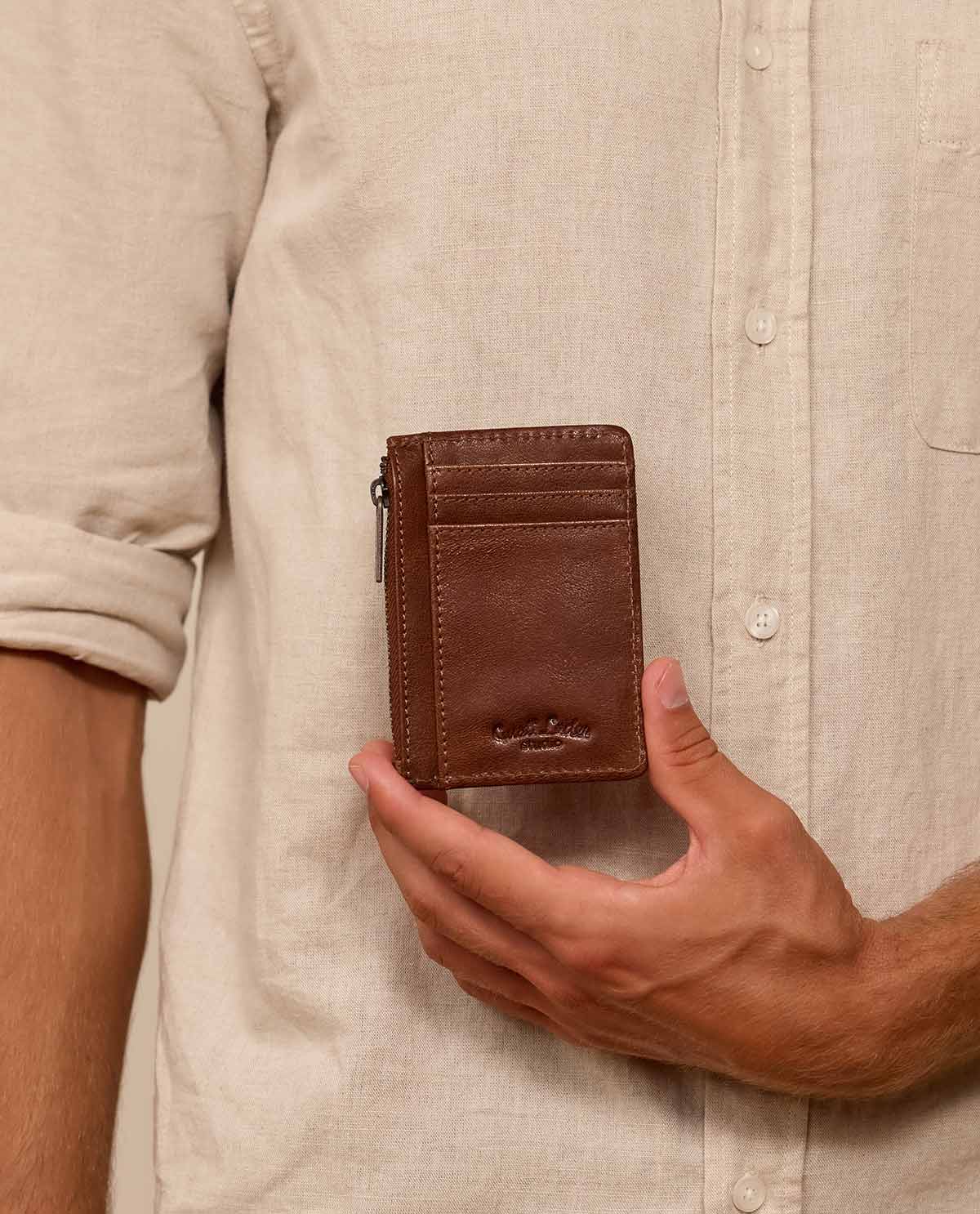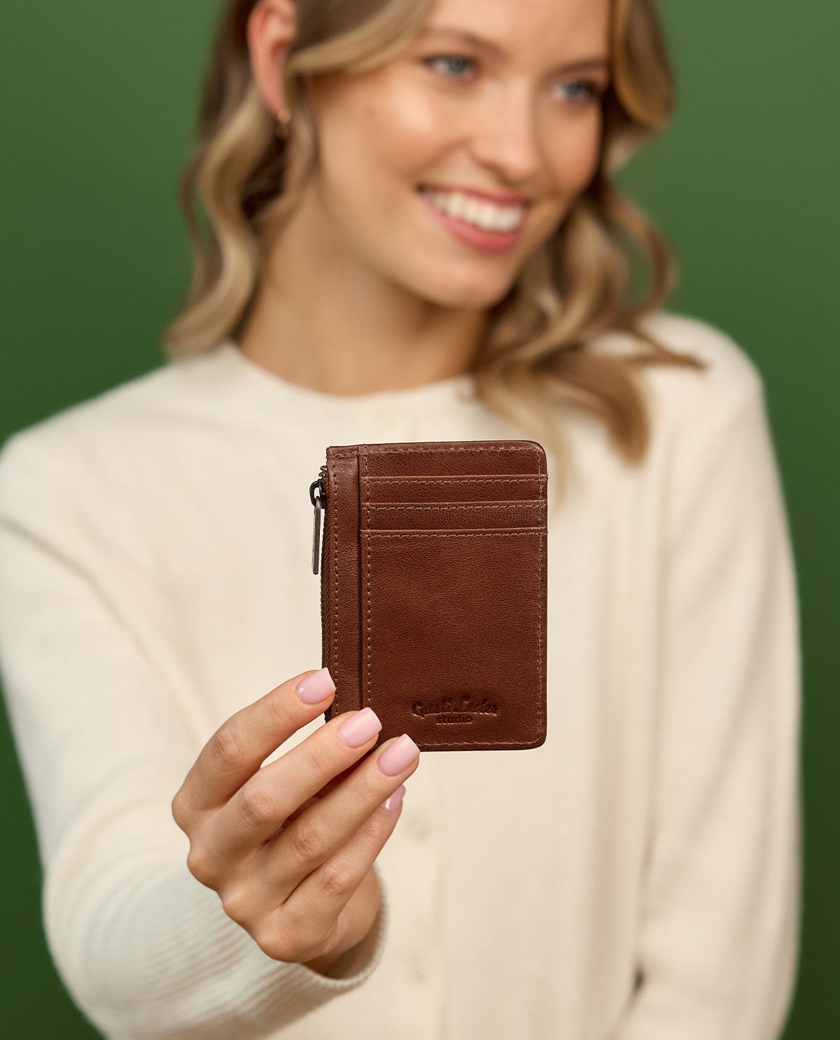 Geldbörse Kartenetui Portemonnaie Damen Herren Braun Leder