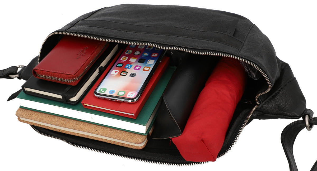Denn diese geräumige Tasche aus widerstandsfähigem Ziegenleder im Format einer großen Bauchtasche kombiniert alle Vorteile eines kompakten Rucksacks mit dem absolut angesagten, lässig-coolen Bellybag-Style - nicht zuletzt auch wegen der angenehm-weichen Beschaffenheit des Leders und dem Chic silberbener Reißverschlüsse. Auf diese Weise kann Dich "Esben" überall hin begleiten, ohne dass Du auf deine liebsten Habseligkeiten oder einen coolen Auftritt verzichten musst. Schließlich bietet "Esben" für Dein Smartphone, Schlüssel und Portemonnaie, Taschenkalender, Stifteetui und noch einiges mehr einfach immer genügend Platz!