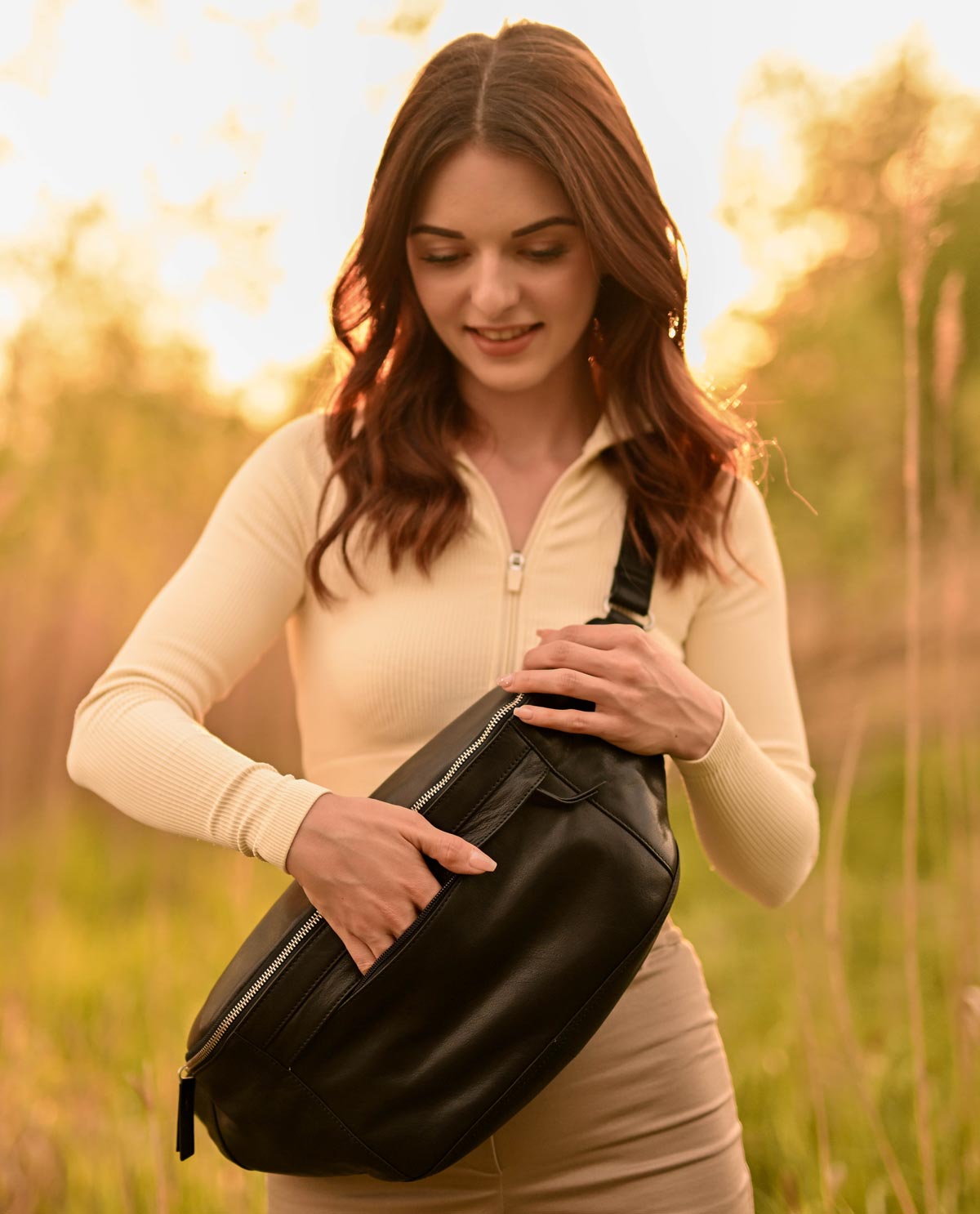Gürteltasche Bauchtasche Hüfttasche Festivaltasche Tasche Handtasche Leder Schwarz