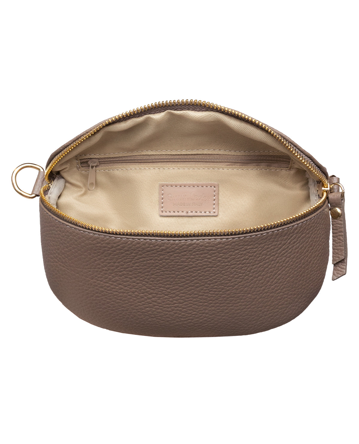 Die "Brinja" Umhängetasche besticht durch ihr elegantes Design und ihre hohe Funktionalität. Mit der markanten, halbrunden Silhouette und dem vollständigen Reißverschluss entlang des oberen Randes bietet sie nicht nur ausreichend Platz für Deine Essentials, sondern auch Sicherheit für all Deine persönlichen Gegenstände. Das hochwertige Leder verleiht ihr eine edle Optik, die sich perfekt in Deinen modernen Alltag einfügt. Im Inneren findest Du zudem das fein eingeprägte "Made in Italy"-Logo, das die Herkunft und Qualität dieser Tasche eindrucksvoll unterstreicht.