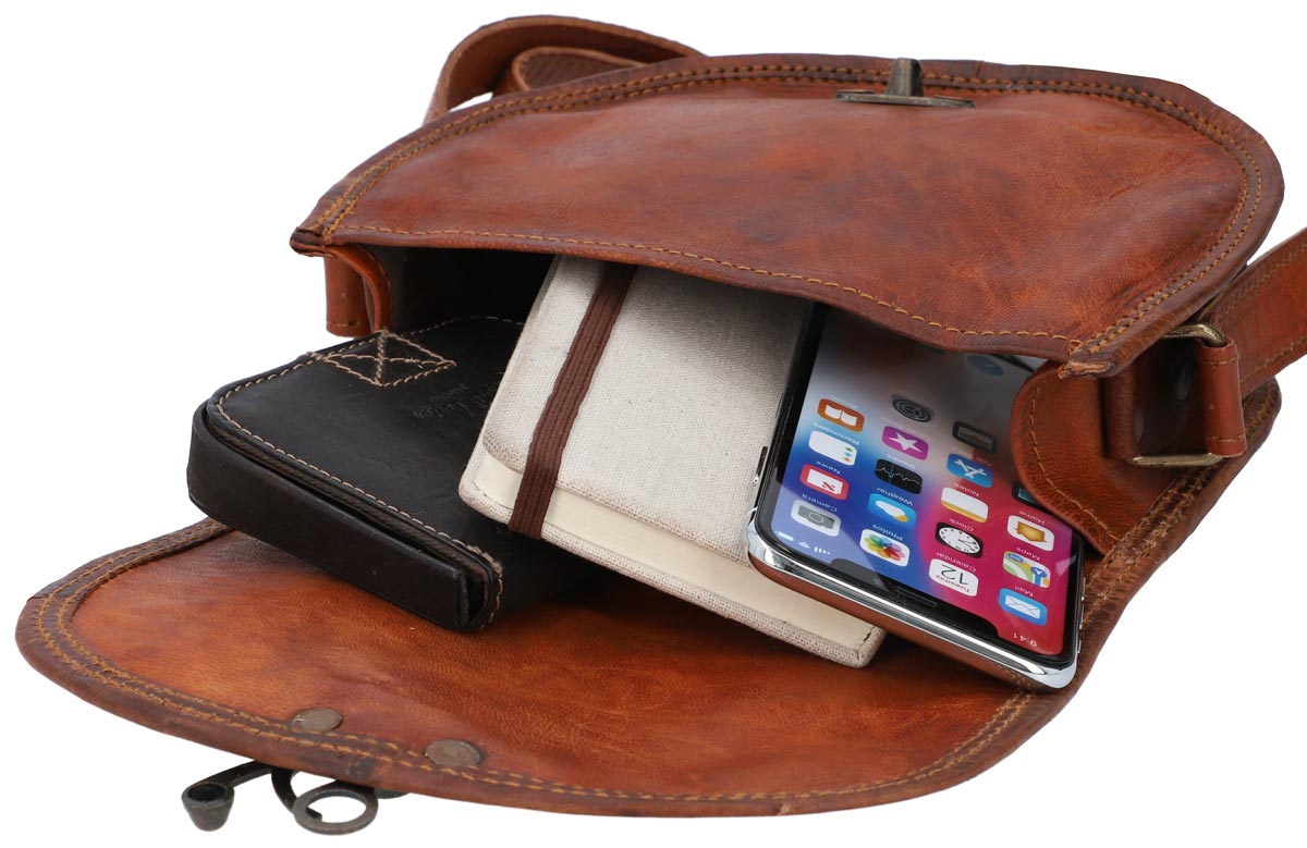 Rosa begleitet dich liebevoll durch den Alltag. Ob nun ein entspannender Spaziergang durch den Park oder eine anstrengende Shoppingtour anstehen, mit dieser kleinen Umhängetasche bist du bestens ausgerüstet! Die Vintageoptik macht die Citytasche zum modischen Accessoire, das zu jedem Outfit gut aussieht. Das hochwertige Leder verspricht Langlebigkeit und Robustheit. Im Inneren findest du ein großes Hauptfach und zwei kleine Nebenfächer, eins davon mit Reißverschluss. Besonders rafiniert ist der clevere Verschluss, der deine Habseligkeiten vor Langfingern schützt. Wegen ihrem klassischen Design kann Rosa dich also problemlos über Jahre begleiten!