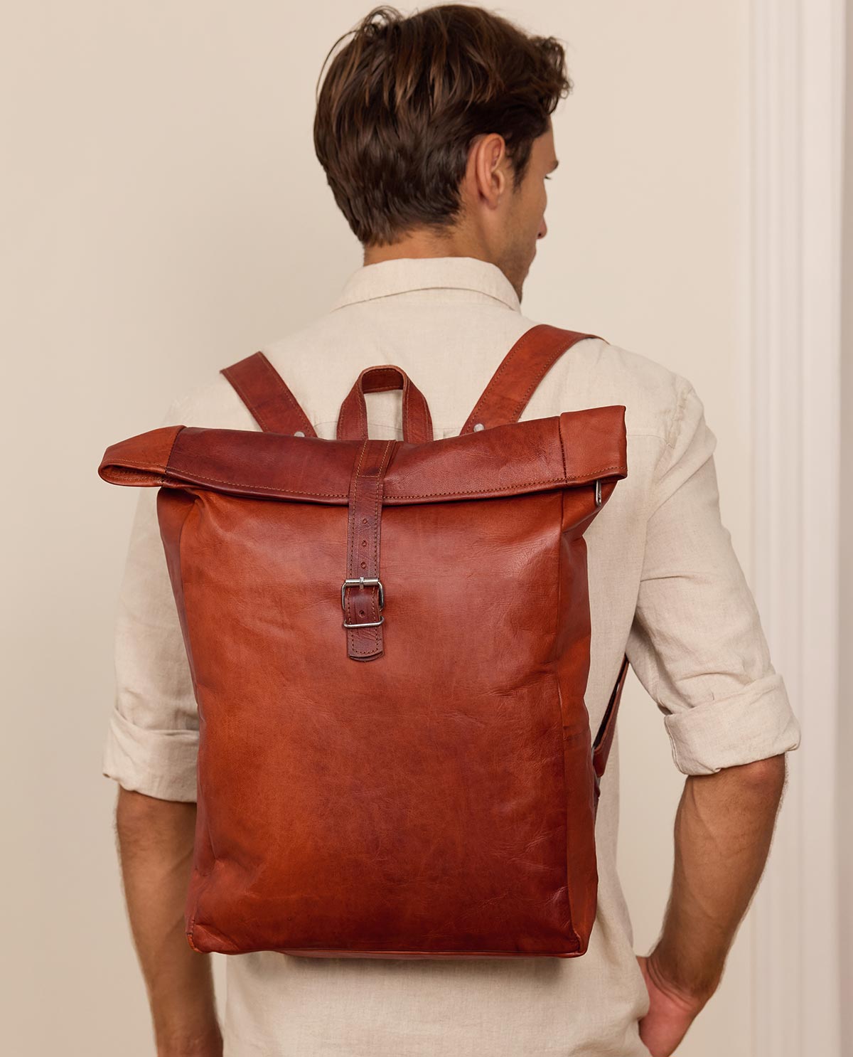 Du brauchst einen wendigen, kompakten Rucksack der mit Lässigkeit und Retro Optik besticht? „Niklas“ passt genau! Der trendige Rolltop aus vegetabil gegerbtem Ziegenleder ist für alle kleinen und großen Abenteuer im Alltag gewappnet. So hast du alle deine sieben Sachen beisammen und kannst deinen Tag optimal gestalten. Ob Uni, auf Arbeit oder Stadtbummel – „Niklas“ ist dabei und erweist sich als charmanter Hingucker und Sorglosbegleiter.