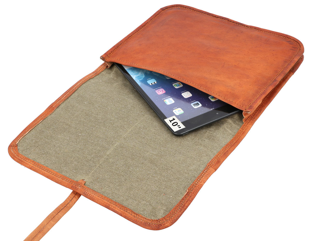 Laptoptasche 10" Tablettasche Lederhülle Dokumentenhülle Vintage Braun Leder