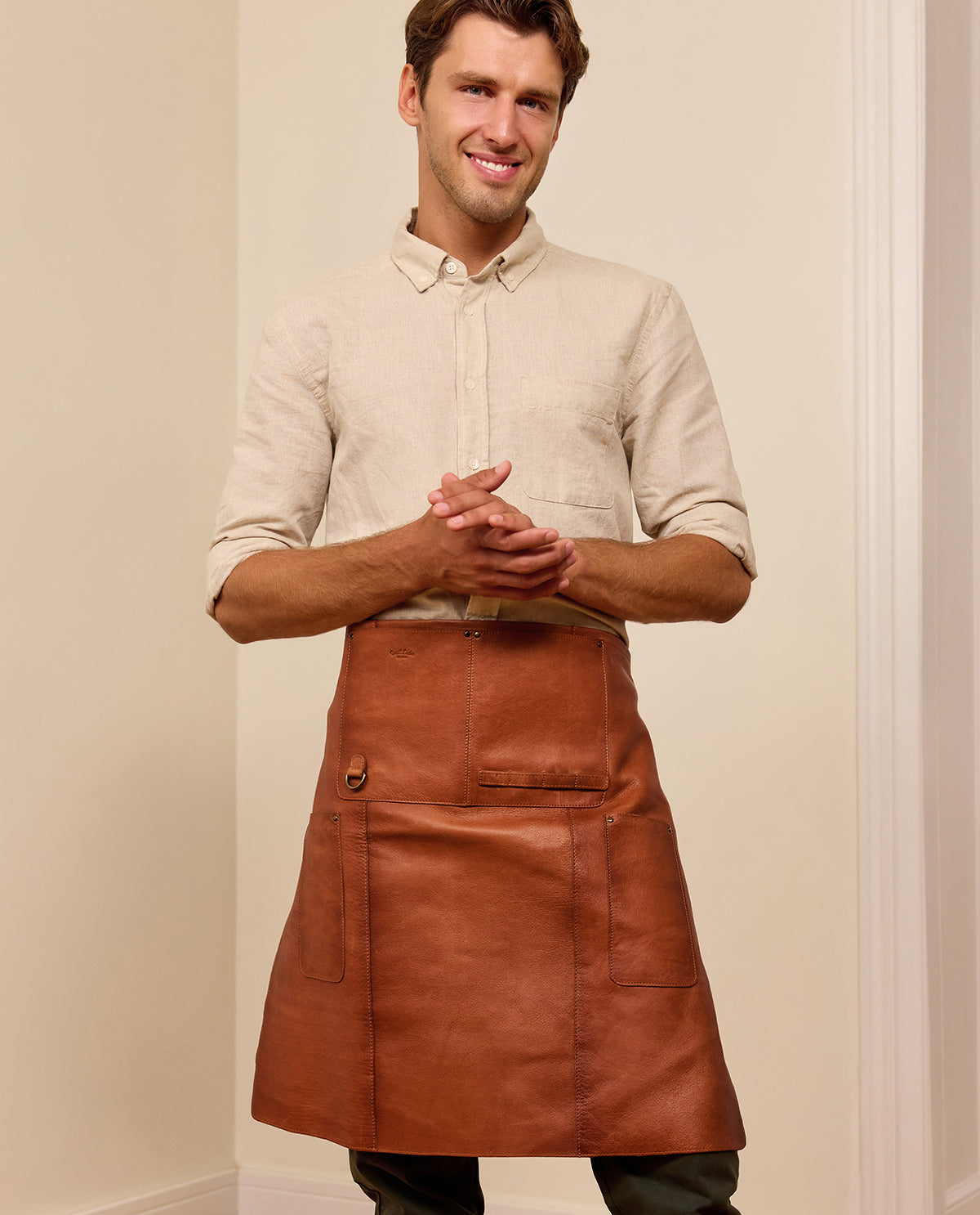 Lederschürze Schürze Friseurschürze Latzschürze Schutzschürze Friseurzubehör Damen Herren Braun Leder