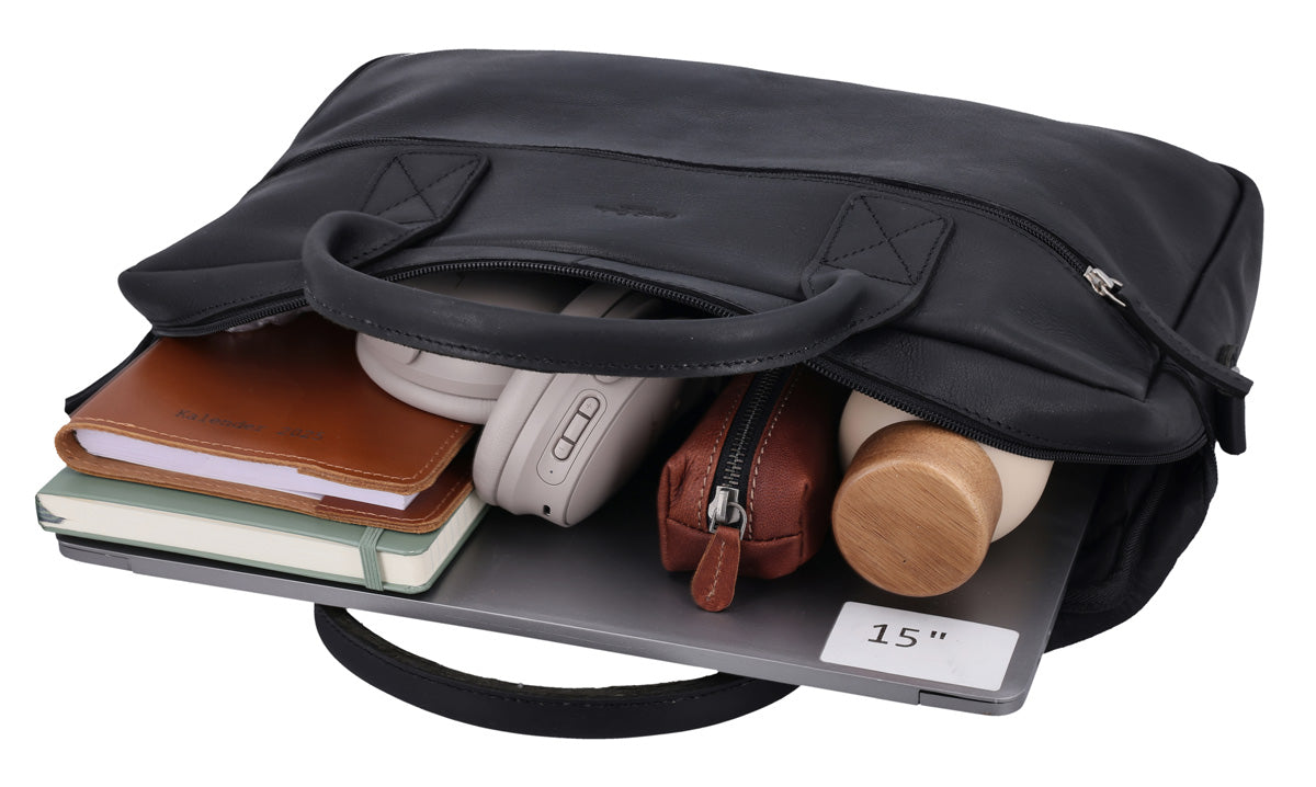 Dein perfekter Begleiter: Die Aktentasche in Vintage-Schwarz aus hochwertigem Leder!