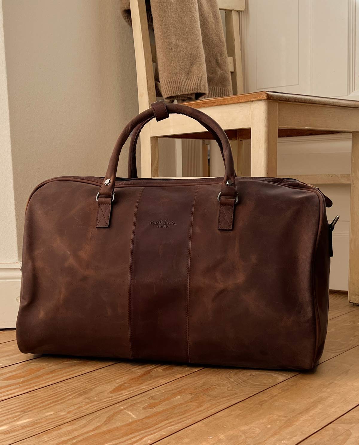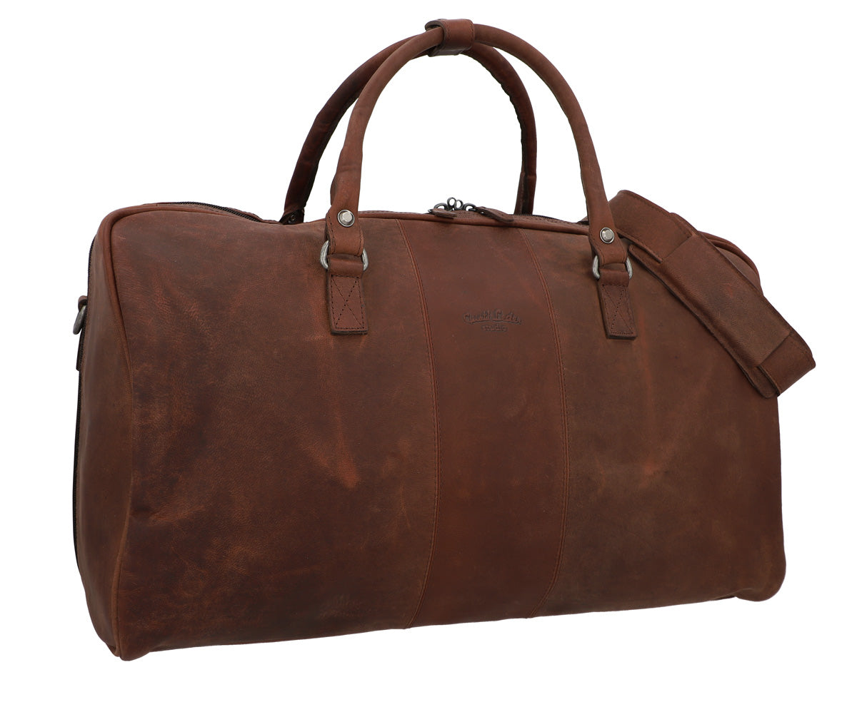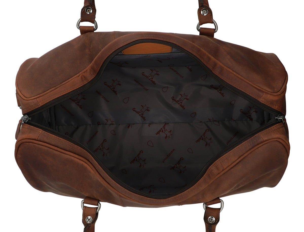 "Valter" ist geräumig: Mit einem Fassungsvermögen von 26 L hat die geräumige Tasche genug Platz für deine Klamotten, Schuhe und Kulturbeutel, aber genauso für Notebook und weiteres Equipment Der angesagte used-Look des Ziegenleders verleiht "Valter" derweil Charme einer Vintage-Reisetasche, ohne dabei auf die Vorzüge moderner Reisetaschen zu verzichten. Die zwei festen Tragehenkel mit abnehmbaren Schultergurt runden das Design des Weekenders ab und es kann losgehen - zu kleinen und großen Abenteuern.