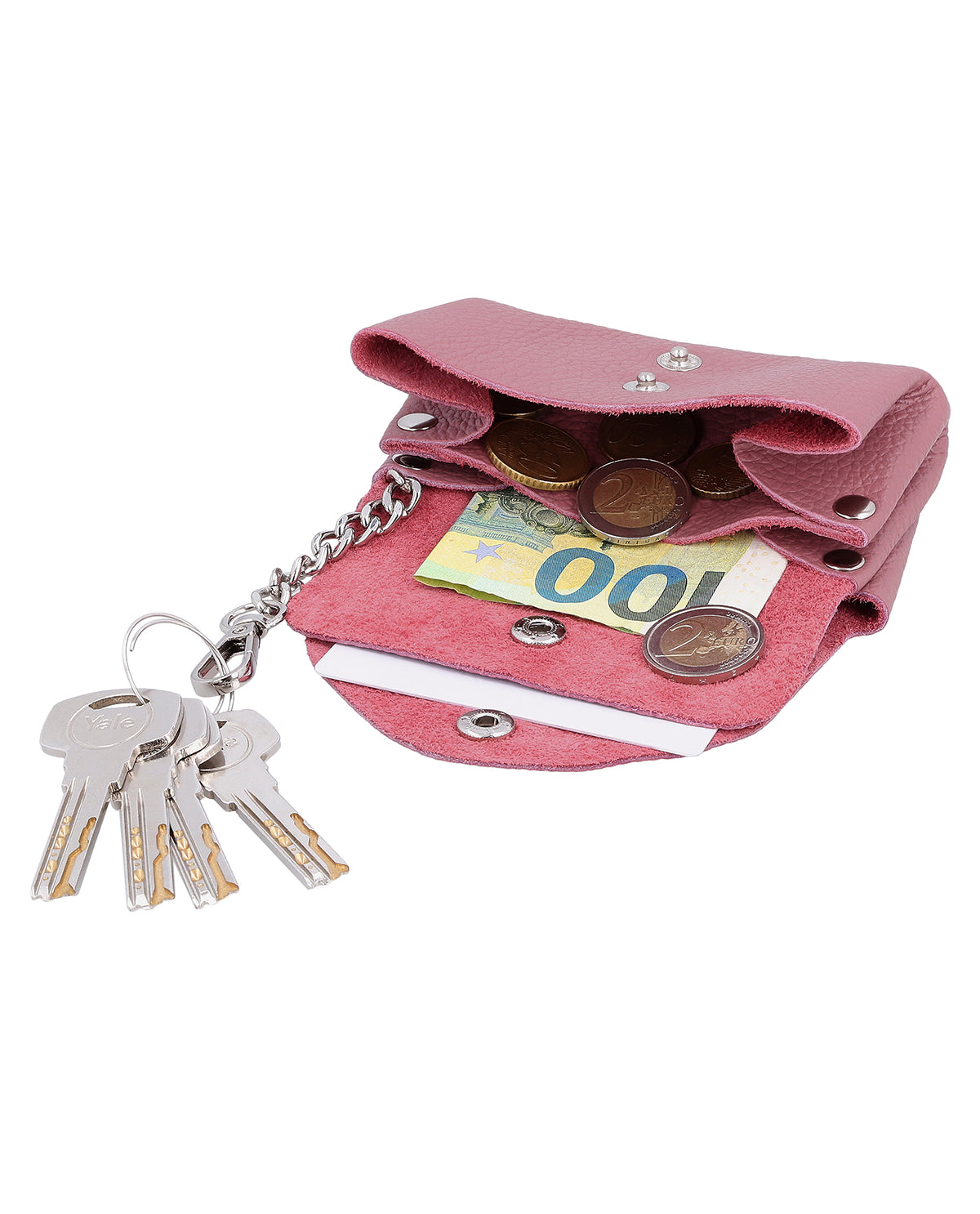 Das Schlüsseletui "Mathilda" vereint italienische Handwerkskunst mit einer stilvollen, praktischen Gestaltung. Gefertigt in Italien aus hochwertigem Leder, liegt es angenehm in der Hand und begleitet Dich als dezentes, aber edles Accessoire im Alltag. Der sichere Druckknopfverschluss sorgt dafür, dass Deine Schlüssel stets geschützt sind, während der robuste Metallschlüsselhaken Deine wichtigsten Schlüssel fest an Ort und Stelle hält. Dank der kompakten Form passt "Mathilda" mühelos in jede Tasche – ideal, wenn Du Ordnung und Eleganz gleichermaßen schätzt.
