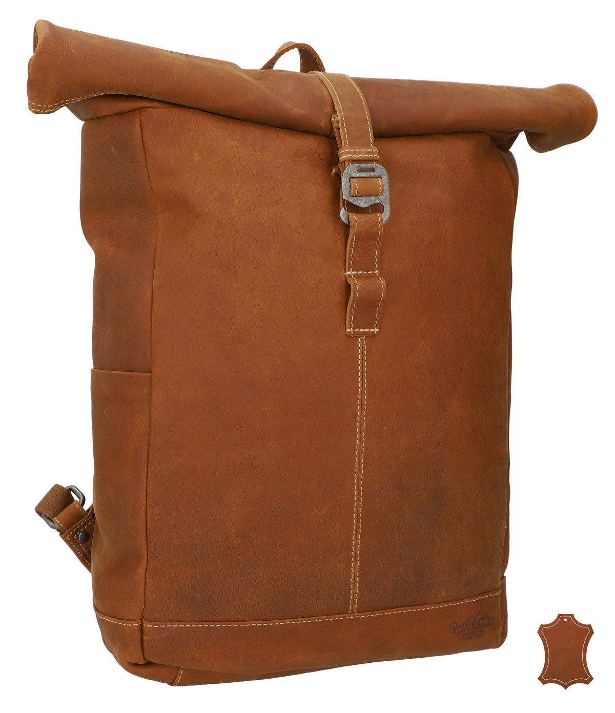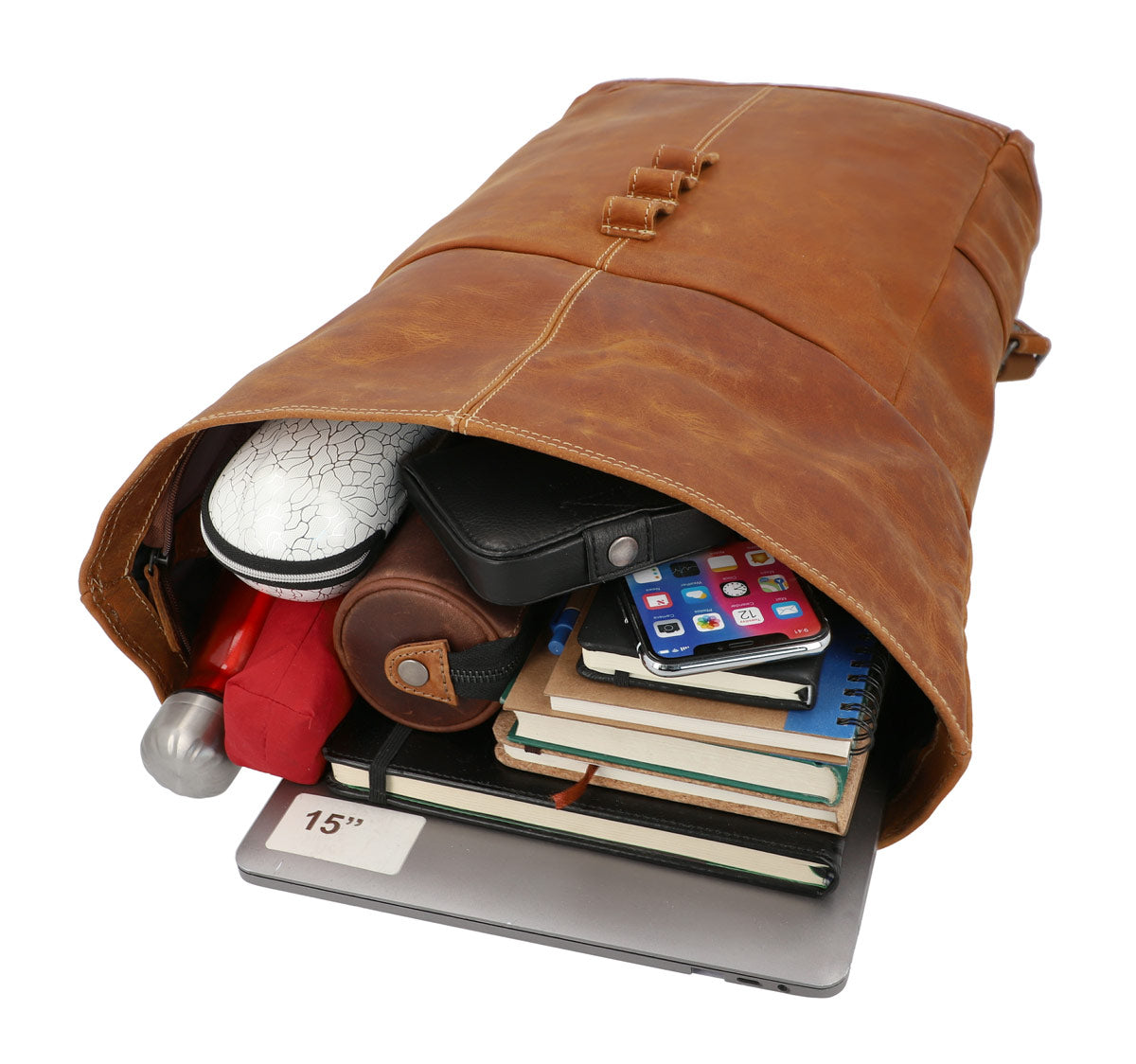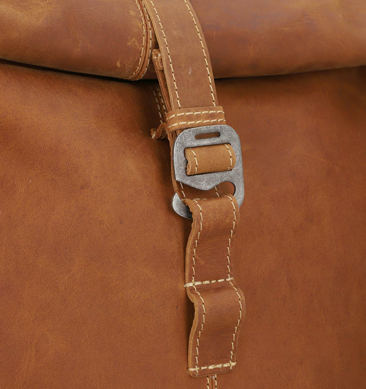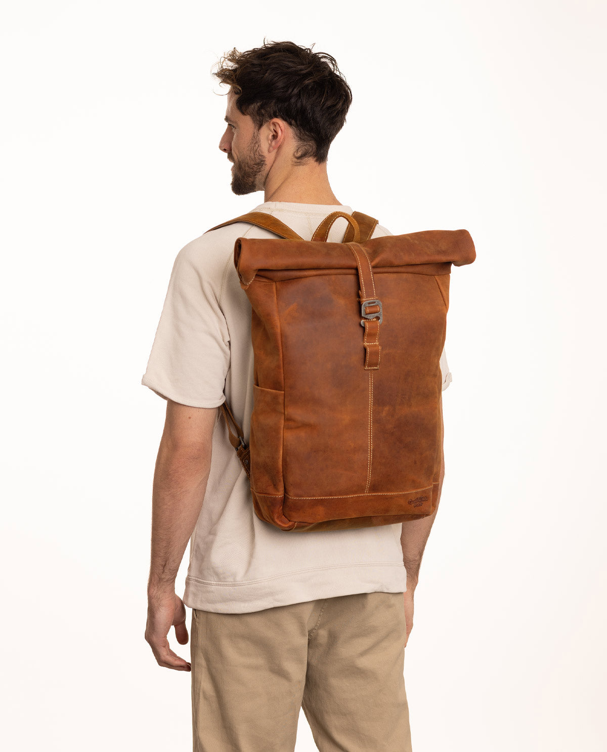 Whether for school, university, or work – our "Bendik" roll-top backpack is always the perfect fit. It impresses with its flexibility, high level of comfort, and spaciousness. This classic yet robust brown leather daypack stands out, especially with its trendy roll-top design – a look you simply can't ignore right now.