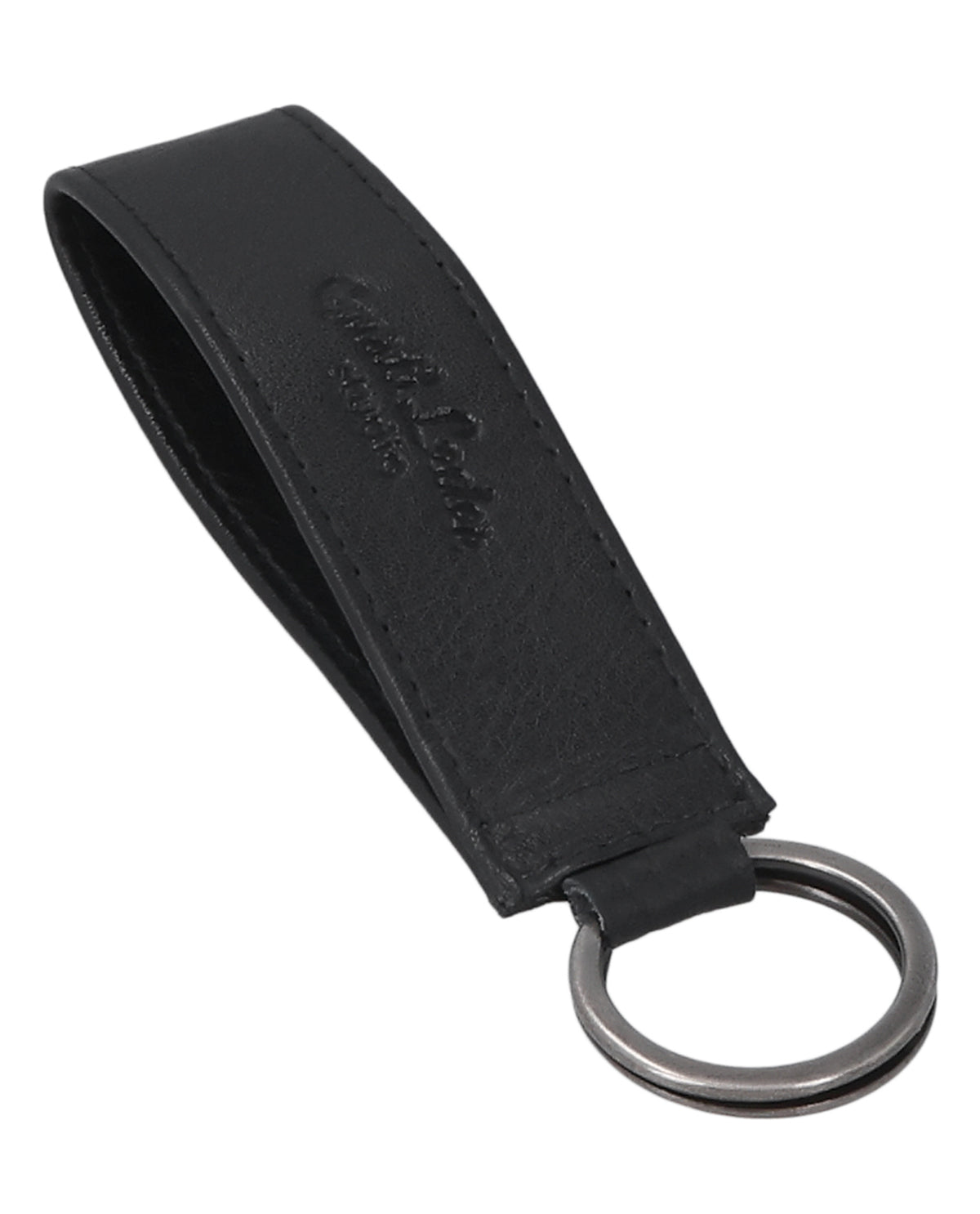 The "Miran" key ring is a black leather accessory for men and women that impresses with its clear shape and minimalist design. The simple design has a timeless look and easily adapts to different bags or key rings. Thanks to the sturdy metal ring, your keys remain securely attached and always within reach. "Miran" stands for uncomplicated functionality in a compact format.