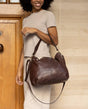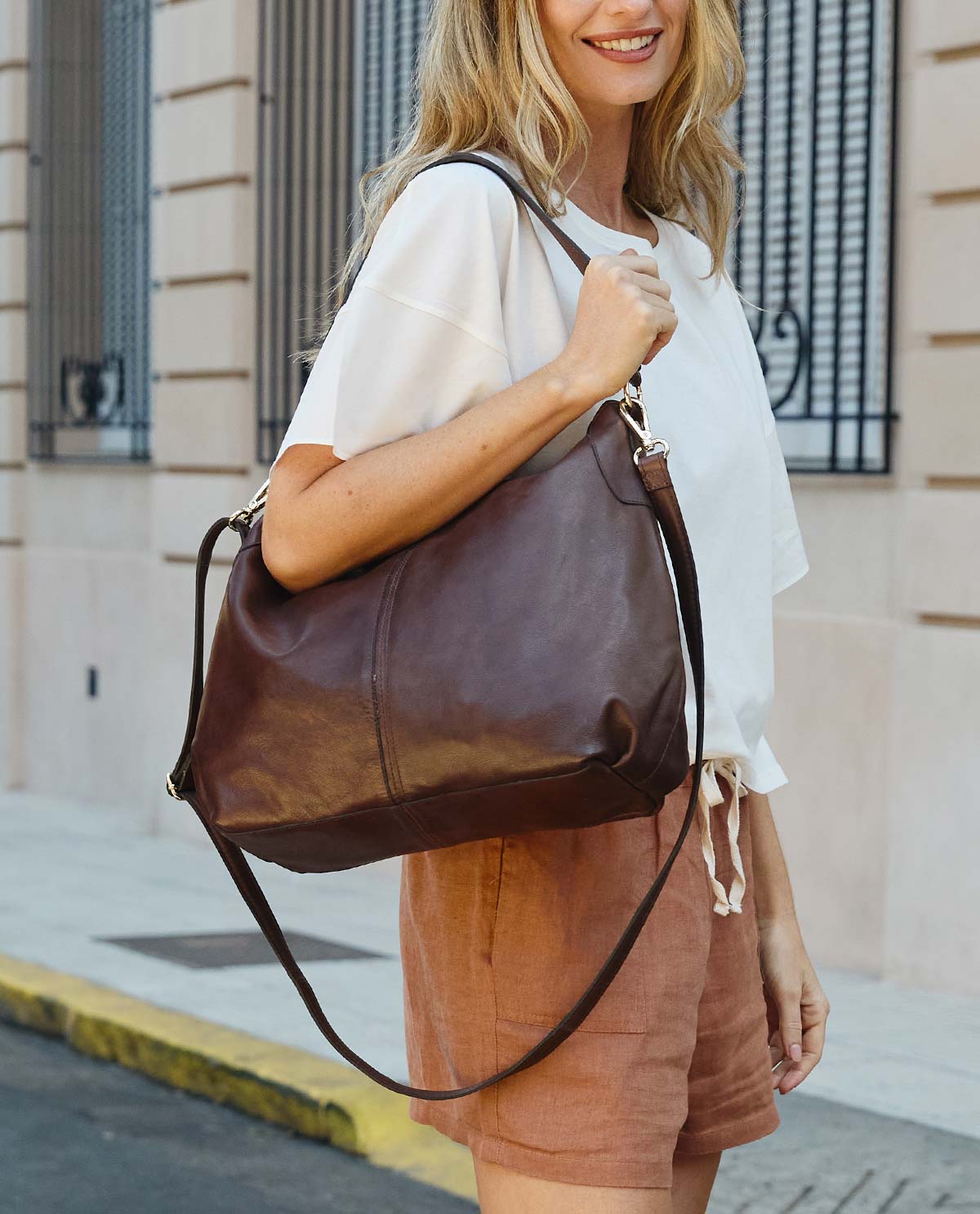 Are you looking for a classic tote bag that won’t let you down in the rain? Then “Hannah’s” exactly what you’ve been looking for! This medium-sized shoulder bag is made of sturdy cowhide leather and comes in a muted dark brown. You’ll be on-trend and still have enough space for everything you need when you’re out and about in the city or at the office, thanks to the spacious compartment inside.