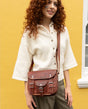 Inside, "Emilia 7" features an additional zippered inner pocket alongside one main compartment, where you can safely store your smartphone or keys within easy reach. The practical outer pocket with a genuine buckle closure perfectly complements the storage space for small items that need to be quickly accessible. A special highlight is the subtle engraving patch: here you have the option to personalize your bag with a custom engraving. This way, "Emilia 7" combines a timeless vintage look with a very personal touch.