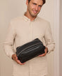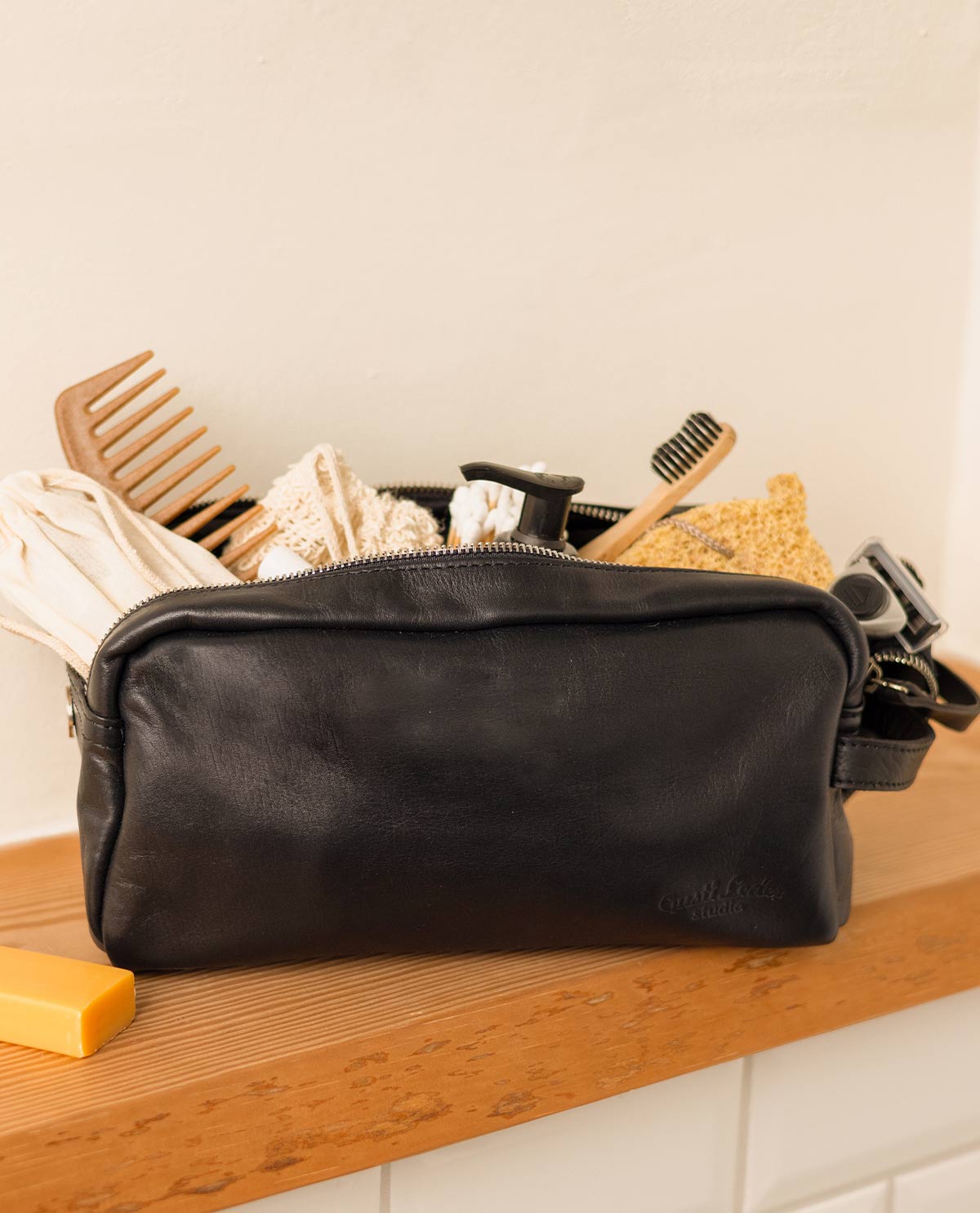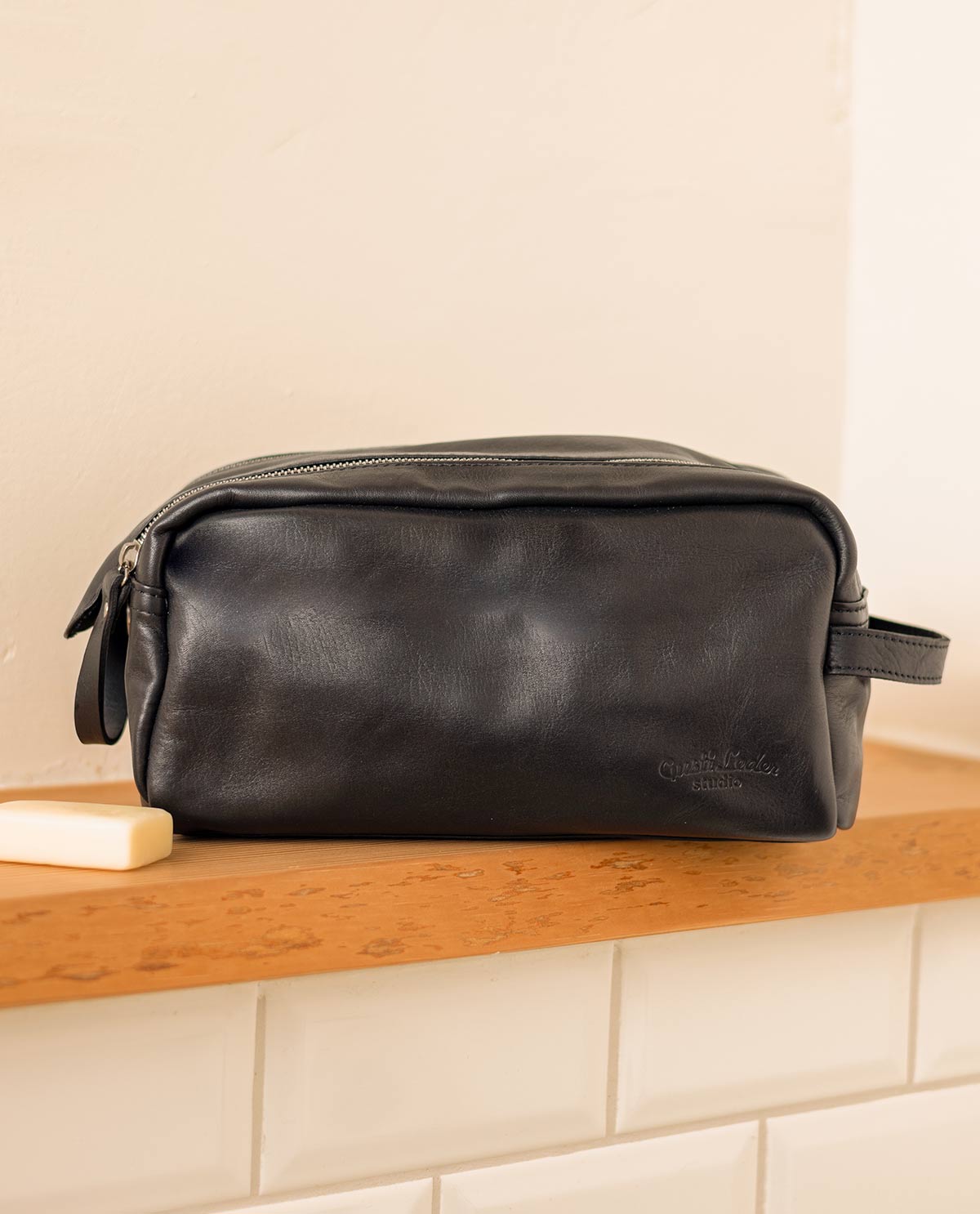 Our high-quality processed cowhide leather sponge bag “Finja” is the perfect place to keep your hygiene products safe when you're on the move. There's space inside for your deodorant, shampoo, conditioner, toothbrush, toothpaste, and much more. The spacious main compartment is lined with water-resistant polycotton, so you don't need to worry about any spillages when you're on the go. Her look is completed by the chic zip, which doubles up as a handle. You can keep everything safely stored at all times.