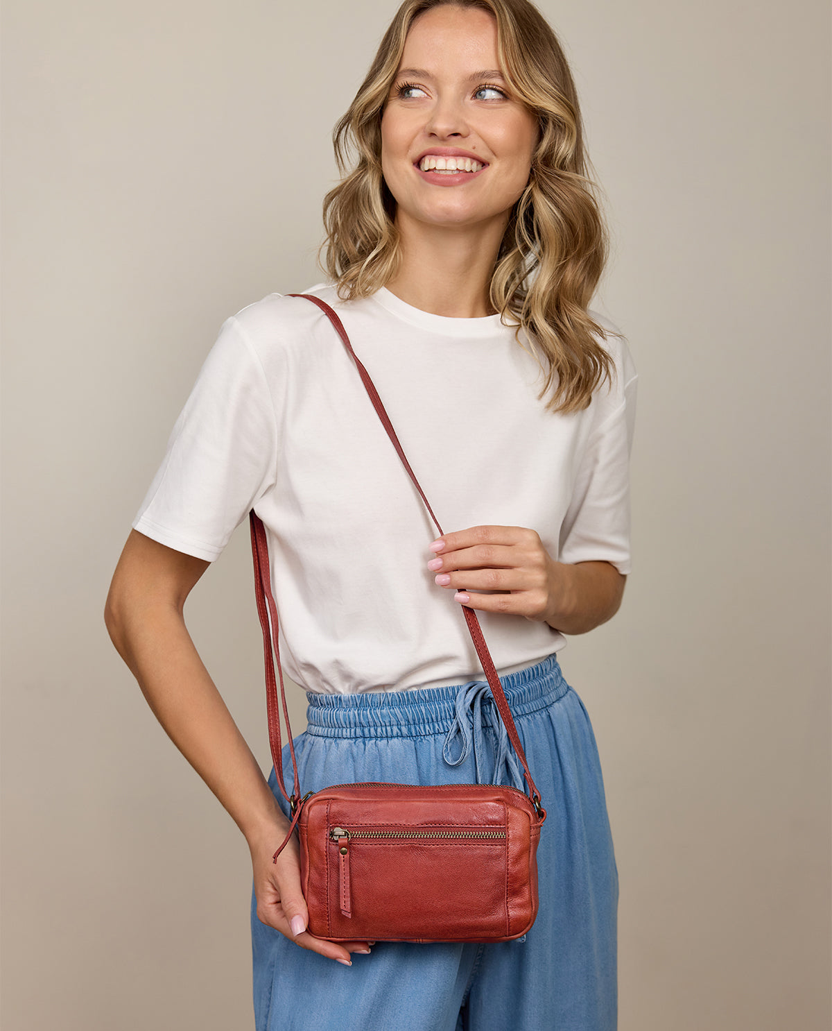 The soft yet sturdy cowhide leather gives this shoulder bag its trendy vintage sporty-casual charm and can be paired with any outfit on any occasion. Available in 8 striking colours! You might even find your favourite colour in our collection.