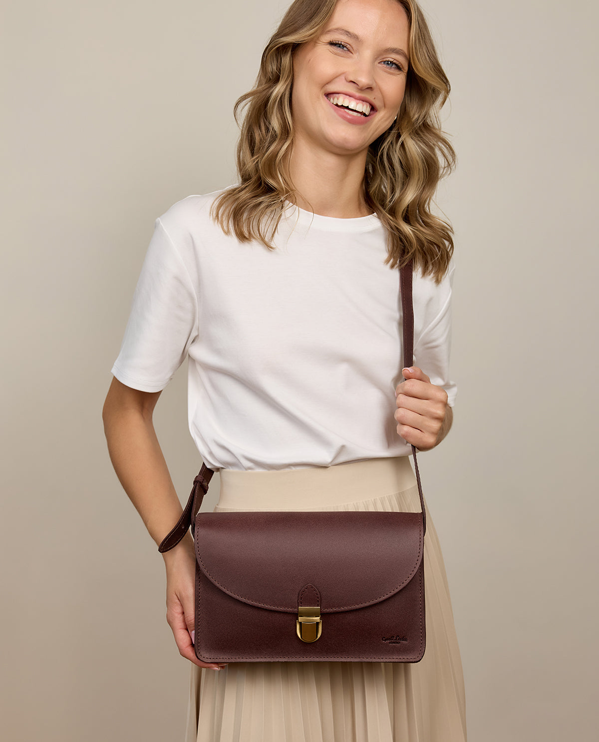 This classic handbag has two compartments inside where you can keep your belongings safe during the day and on big nights out. There's even space for your favourite book. Take our elegant shoulder bag “Zoey” to your next party. The gold fastener is easy to use and completes “Zoey's” sophisticated vintage look.