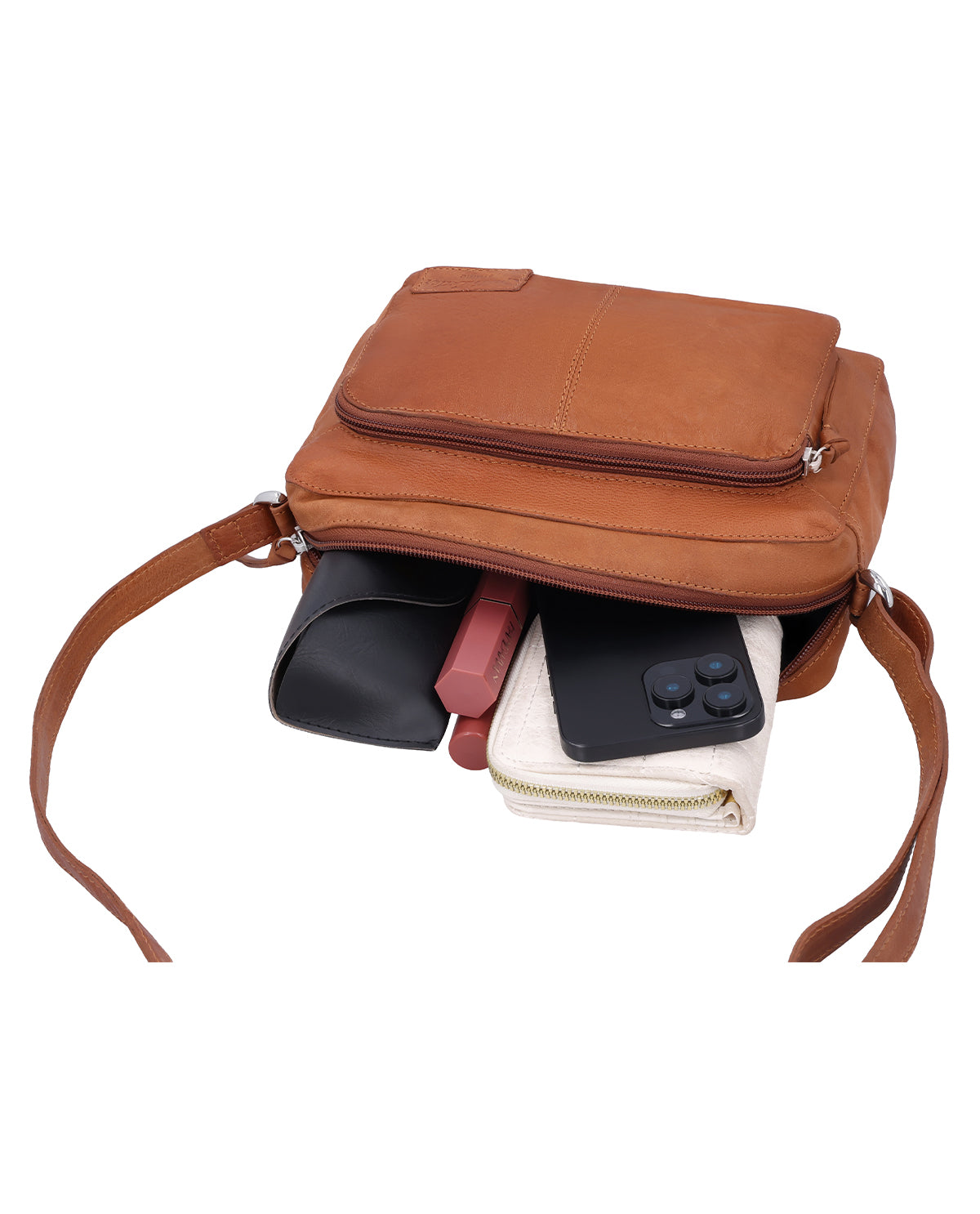 Inside, “Amani” features an additional zippered compartment that helps you neatly store smaller essentials. The leather gives the bag a warm, timeless look and makes it versatile for pairing with various outfits. The adjustable shoulder strap ensures comfortable wear and allows the bag to be carried both over the shoulder and crossbody. “Amani” is a small leather handbag for women that combines functionality, simplicity, and everyday practicality in a harmonious design.