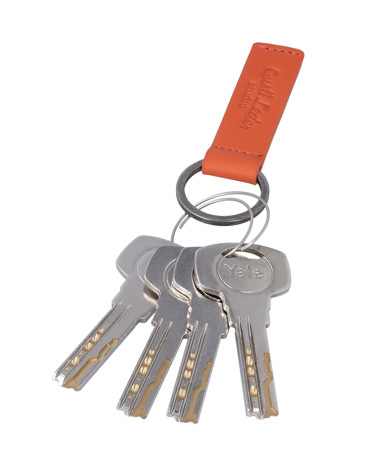 Keychain leather accessory women men orange leather