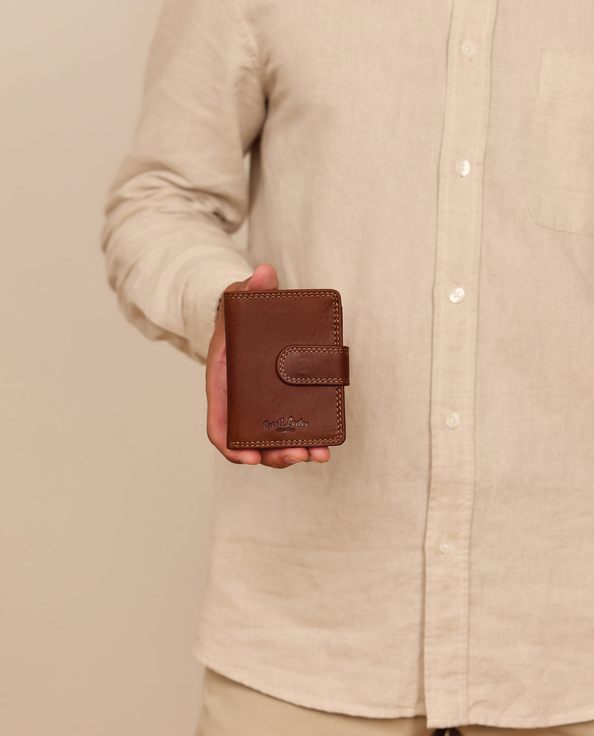 Our wallet "Matheo" blends elegant design with maximum functionality, making it the perfect choice for women and men. Crafted from premium dark brown leather, it'll impress you with its sophisticated look and long-lasting quality. Thanks to its slim design, it fits effortlessly into any pocket without compromising on storage space. Use it as a cardholder, card case, or classic wallet, "Matheo" offers a smart and stylish solution for everyday use.