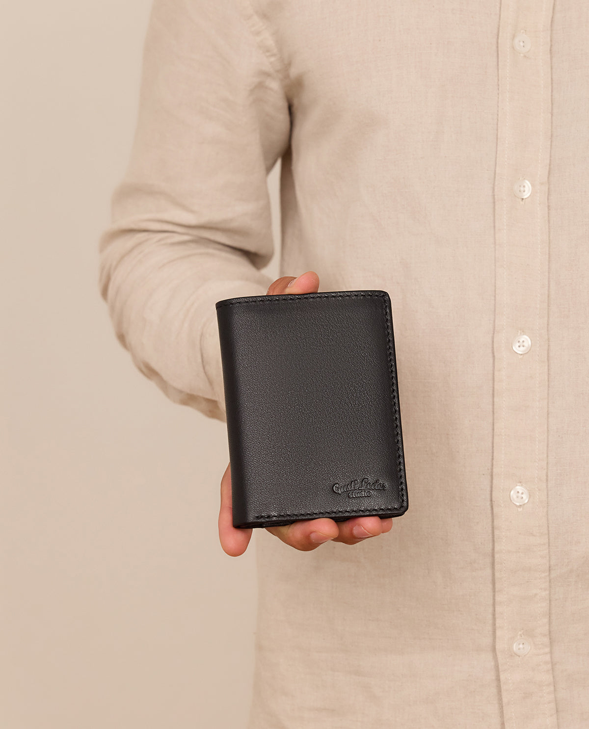This practical portrait leather wallet is sure to win you over. “Macon” won’t just impress you with its timeless design, which can look elegant or rustic depending on the colour and finish you choose, but with its handiness and security too! This robust high-quality leather wallet is extra sturdy and strong.