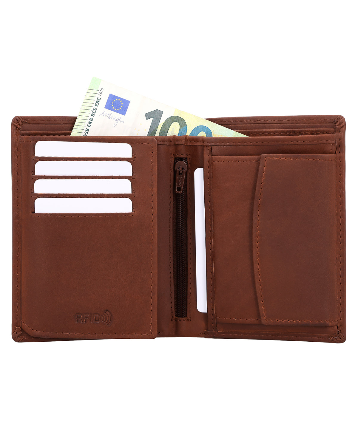 This leather wallet in a practical portrait format impresses across the board. "Macon" not only captivates with its timeless design, which appears elegant or rustic depending on the color and finish and exudes style and style awareness, but also with its handy size. The icing on the cake is the durable, high-quality leather, which gives the wallet optimal dimensional stability and strength. In addition, "Macon" is equipped with RFID protection, which makes it much more difficult for unauthorized persons to read your card data contactlessly – for greater security in everyday life.
