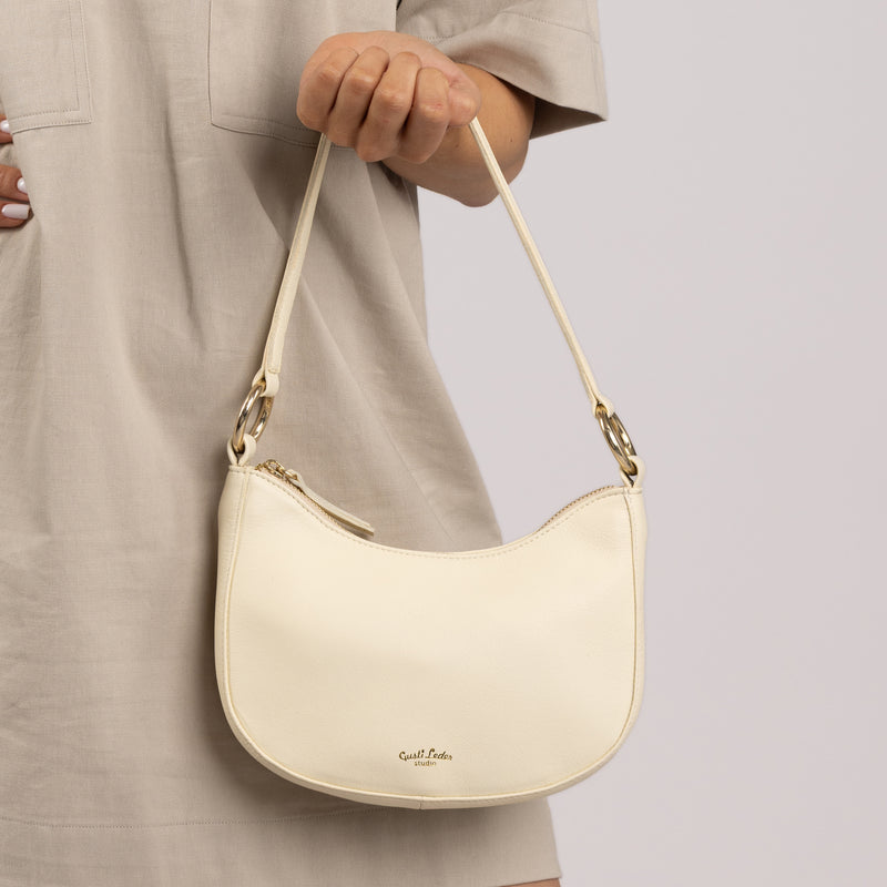 ショルダーバッグと一緒に 「マジラ」 リラックスした街歩きを楽しんでください。重要なものはすべてき​​ちんと収納され、いつでも手の届くところにあります。時代を超越したレトロなデザインは、必需品を入れるのに十分な広さと、邪魔にならないほどコンパクトなため、次の都市旅行の理想的なパートナーになります。