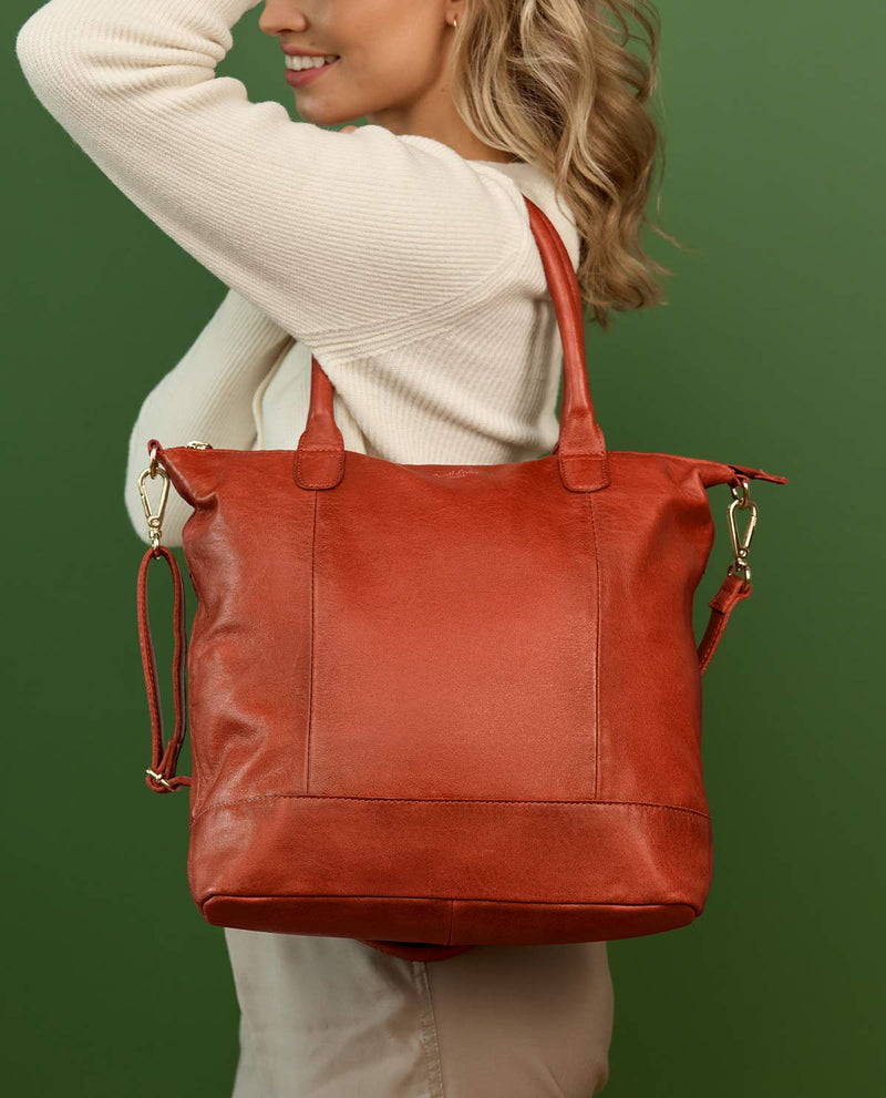 茶色の買い物客 「ジョセフィーヌ・ニュー」 カジュアルな服装にぴったりです。軽くてスタイリッシュで、すぐに目を引きます。取り外し可能なジッパー付きコンパートメントには、リップクリーム、ヘッドフォン、鍵など、すぐに取り出したいものを収納できるスペースがあります。また、AirTag コンパートメントが隠れているため、バッグを常に安全に持ち運ぶことができます。