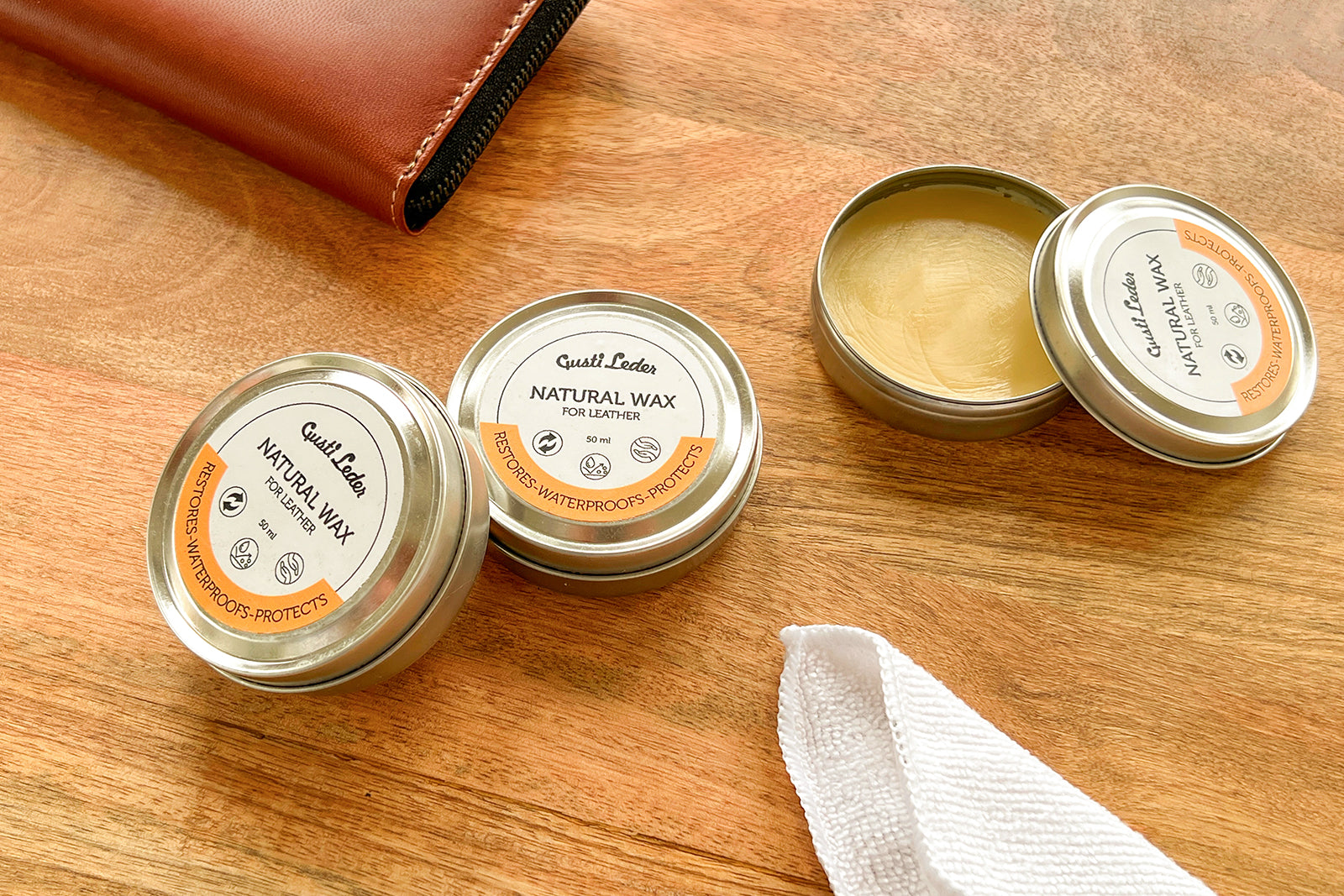 - レザーバームやミツロウなど、Gusti のレザーケア製品を使用して、アクセサリーを最適な状態に保ちます。