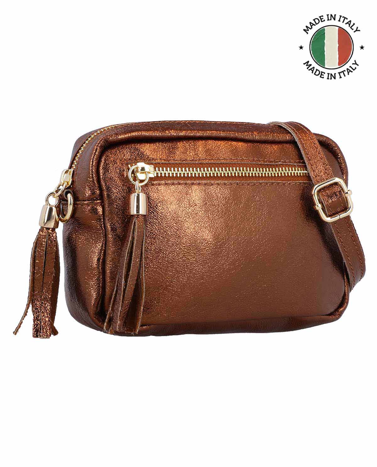 高品質のレザーで作られた「Cariba」ショルダーバッグは、スタイルと実用性を同時に重視する女性にとって理想的なパートナーです。安全なファスナーが貴重品を確実に守り、エレガントなジッパーのチャームがバッグに特別なアクセントを加えます。内部には明るく、細かく構造化された布の裏地があり、上品な見た目だけでなく、必需品を明確に把握することができます。さらに、控えめで細かく刻印された「イタリア製」のロゴと、個人的なメッセージを刻むことができる刻印パッチが付いています。このようにして、「Cariba」は美しいだけでなく、個性的なアクセサリーになります。