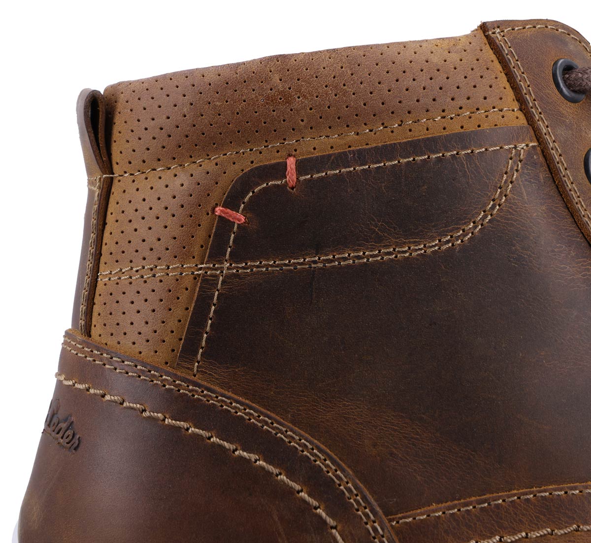 内部では、「オベロン」はチェック柄のテキスタイルライニングとレザーと布のインサートの組み合わせで、通気性と快適な履き心地を保証します。牛革のインソールは快適な歩行感を提供し、ポリウレタン製のソールは柔軟性と安定性を兼ね備えています – 長時間の歩行に最適です。かかとのエンボス加工されたGusti Lederロゴは、高品質な仕上げとタイムレスなスタイルを際立たせます。「オベロン」で、エレガンス、快適さ、職人技の品質を完璧に調和させた靴を楽しむことができます – スタイルに敏感な現代の男性に。