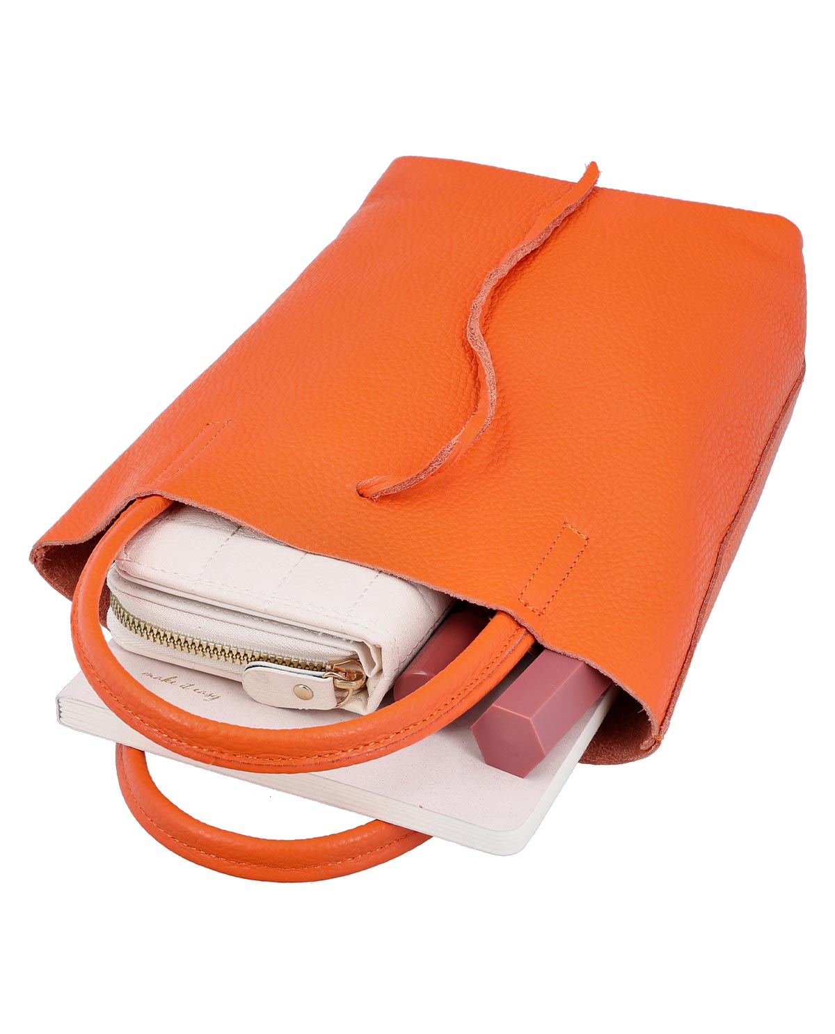ショルダーバッグ レザーバッグ ショッパーバッグ ハンドバッグ レディース オレンジ レザー - Made in Italy