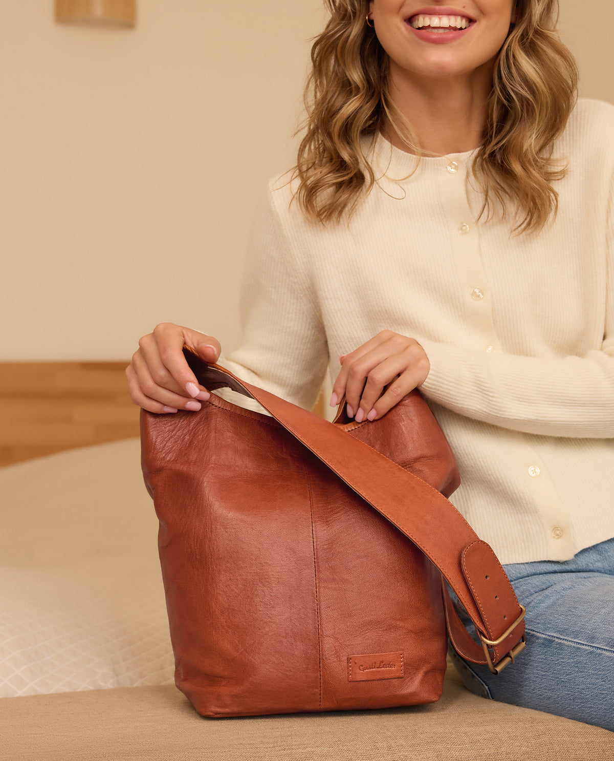 YKKの金属ジッパー、ビロードのように滑らかな裏地、補強された縁取りが特徴です。ジョセフィン・ニュー「触れた瞬間に感じる品質」を体現している。Gustiのレザーのエンボス加工と刻印面により、このバッグは機能的であるだけでなく、君のスタイルを強調するステートメントにもなっている。