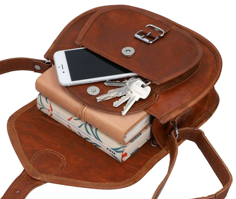 外側に付いているポケットには、小さな持ち物を安全に、手元に置いておくことができる。また、広々としたメインコンパートメントには、スマートフォン、財布、鍵、小さな化粧ポーチなどを収納できるポケットが付いている。スナップボタンとバックルで閉めることができるため、さらに安全で、「ロミー」のヴィンテージ風の外観を巧みに引き立てている。