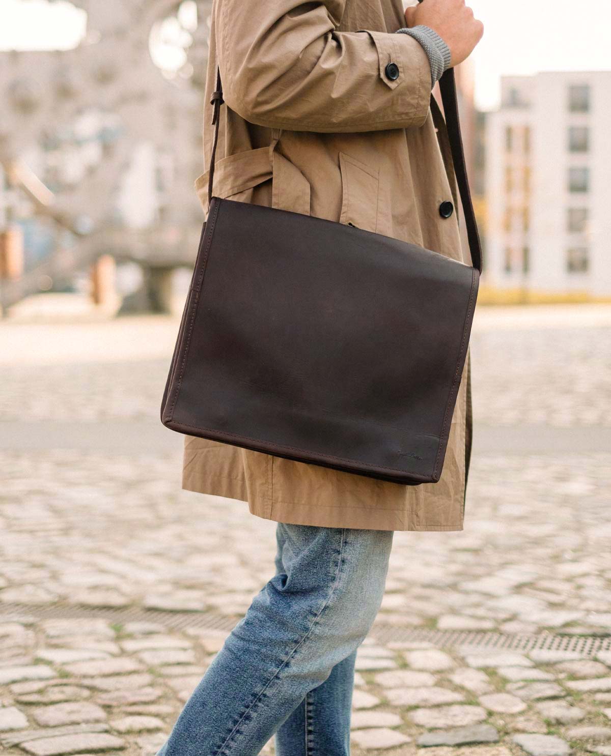 So bietet "Mitch" und sein geräumiges Hauptfach ohne Probleme Platz für technische Geräte bis zu einer Größe von 15". Auch DIN A4-Aktenordner lassen sich problemlos hierin verstauen, ebenso wie der Terminkalender, Schreibutensilien, das Lunch-Paket, eine kleine Trinkflasche u.v.m. Die beiden schmaleren Fächer sowie die zwei zusätzlichen Reißverschluss-Innenfächer bieten überdies die Möglichkeit, kleinere Habseligkeiten griffbereit zu verstauen, ohne lang nach ihnen suchen zu müssen. Der längenverstellbare Schulterriemen ermöglicht es Dir dabei, "Mitch" ideal an Deine individuellen Tragegewohnheiten anzupassen, während zwei Magnetverschlüsse dafür sorgen, dass unterwegs alles vor Staub und Feuchtigkeit geschützt ist. Darüber hinaus ist der gesamte Innenraum der Tasche mit wasserfestem Polycotton ausgekleidet, sodass selbst der stärkste Regen dem Inhalt Deiner Tasche nichts anhaben kann.