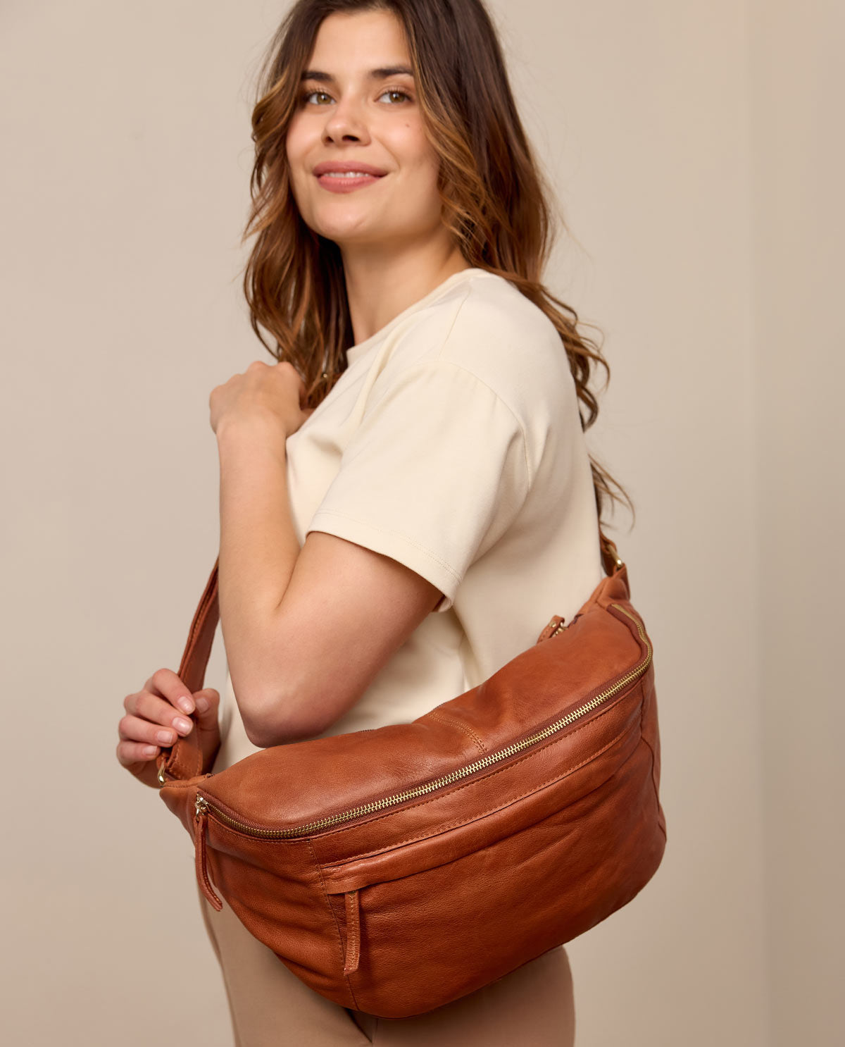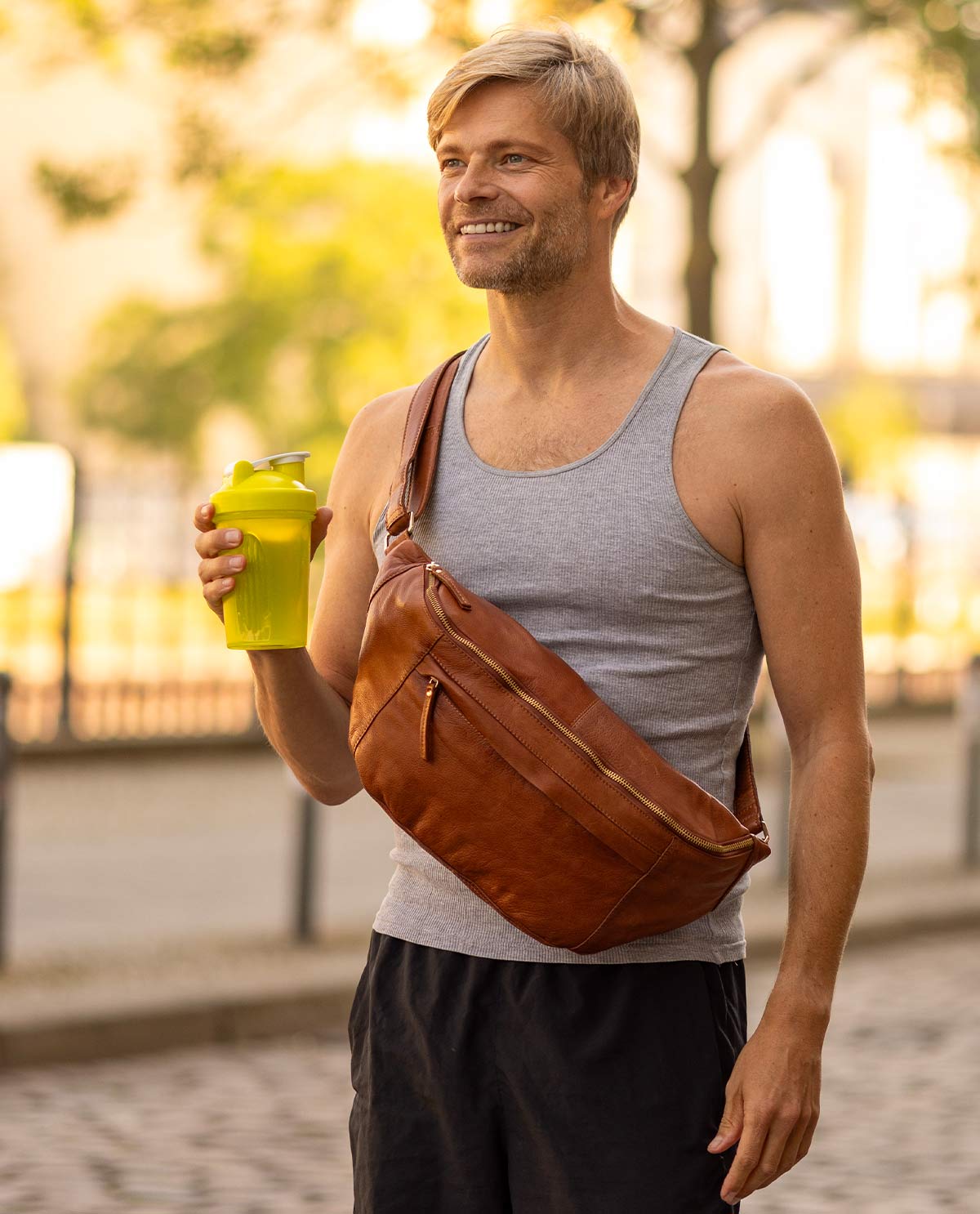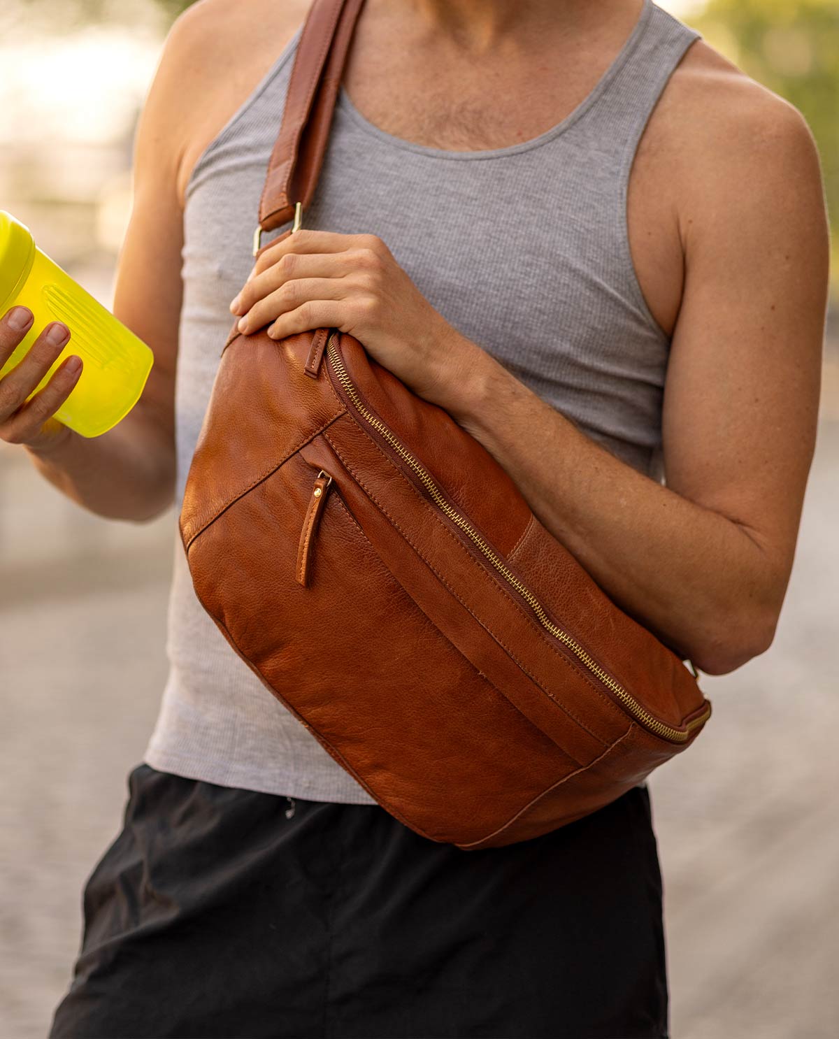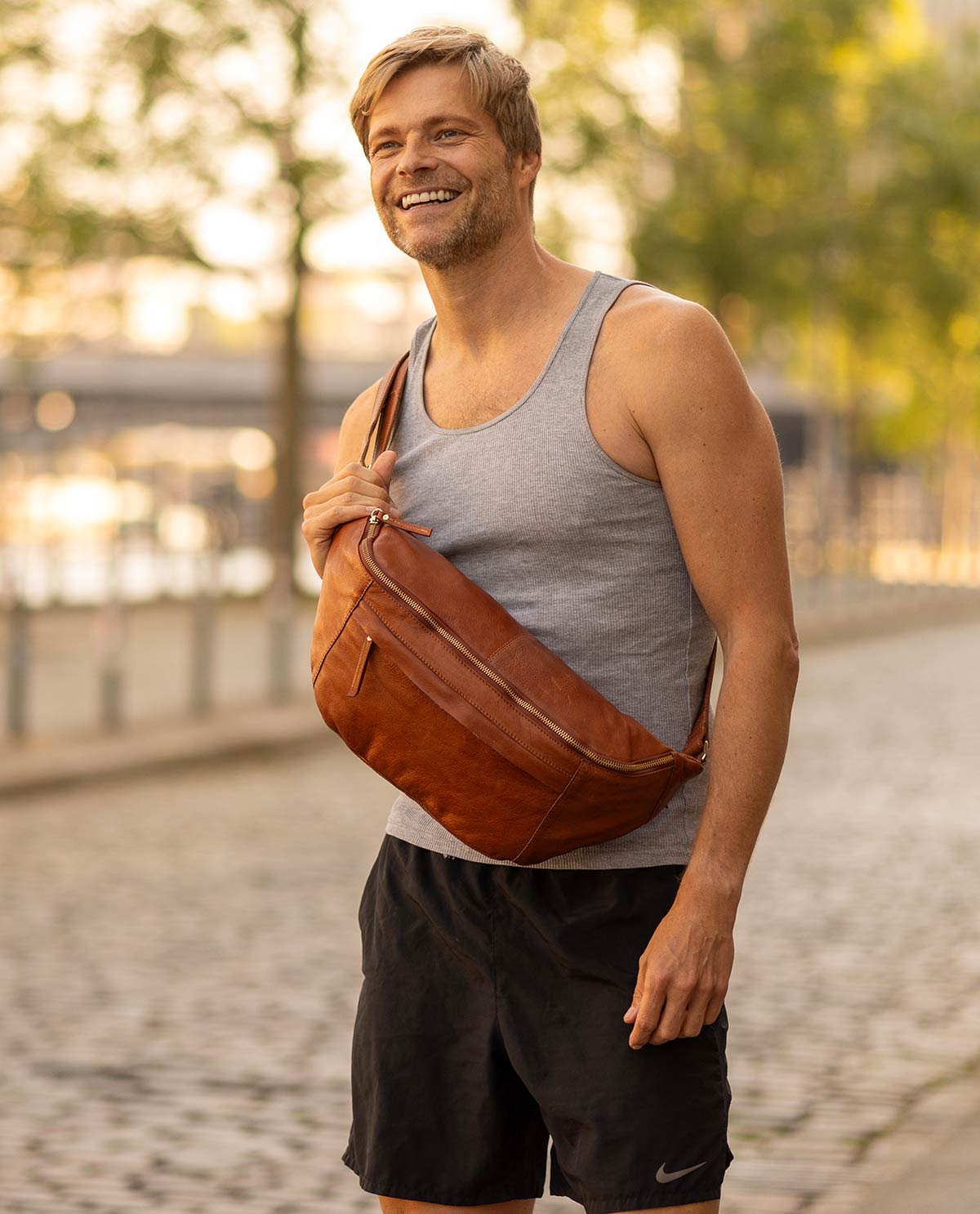 この丈夫な牛革製の広々としたバッグは、大きめのウエストポーチサイズで、コンパクトなリュックの利点と、カジュアルでクールなベリーバッグスタイルの両方を兼ね備えています。柔らかく心地よい革の質感とシルバーカラーのファスナーが、このバッグをさらに魅力的にします。「Esben」は、スマートフォン、鍵、財布、手帳、ペンケースなどをすべて収納できる十分なスペースを提供し、どこにでも一緒に連れて行けます。持ち物をしっかりと持ち運びつつ、スタイリッシュな見た目を犠牲にすることはありません。